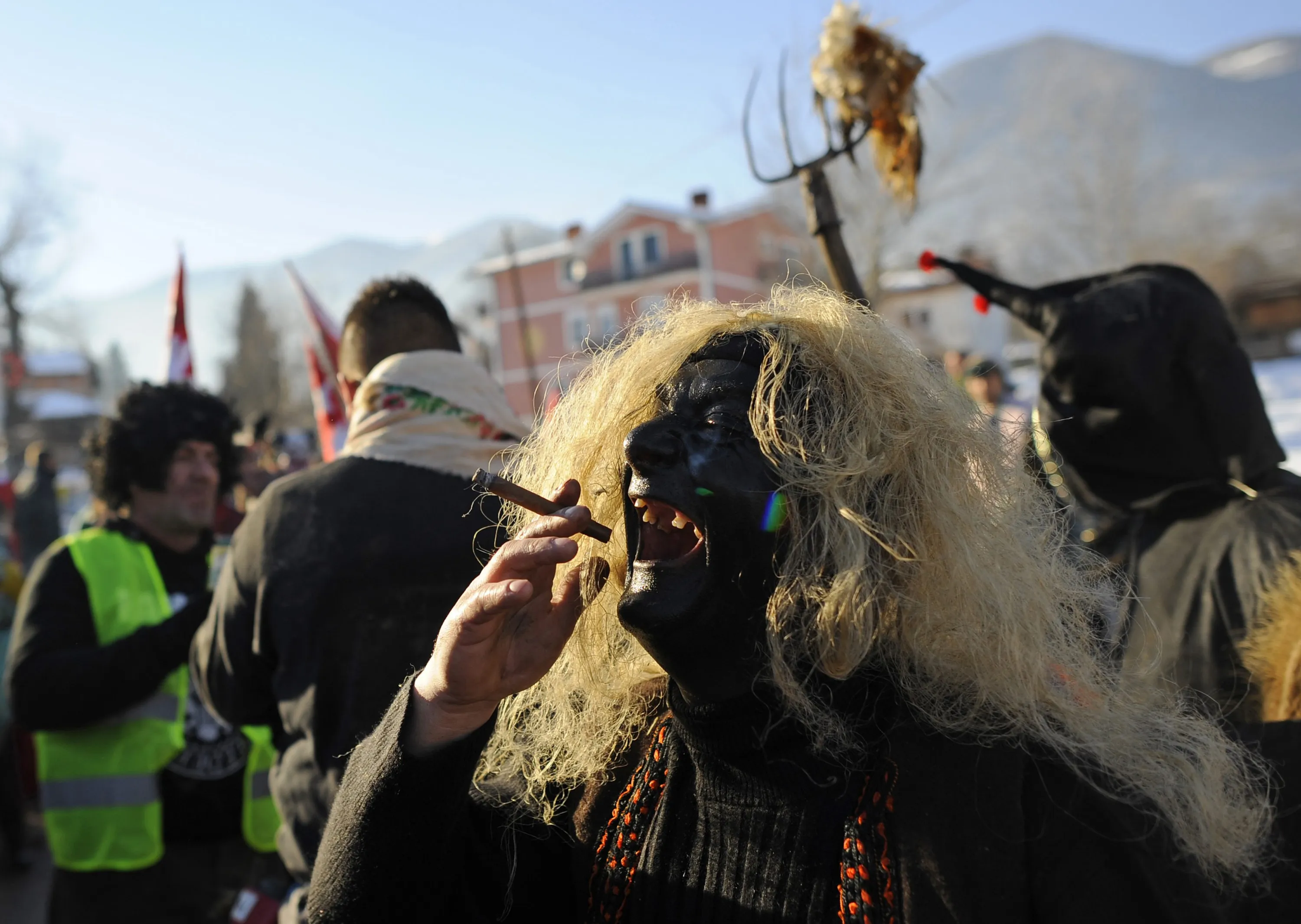 Revellers participate in a parade on the street during a carnival in the village of Vevcani, south of the Macedonian capital of Skopje, January 13, 2015. (Photo by Ognen Teofilovski/Reuters)