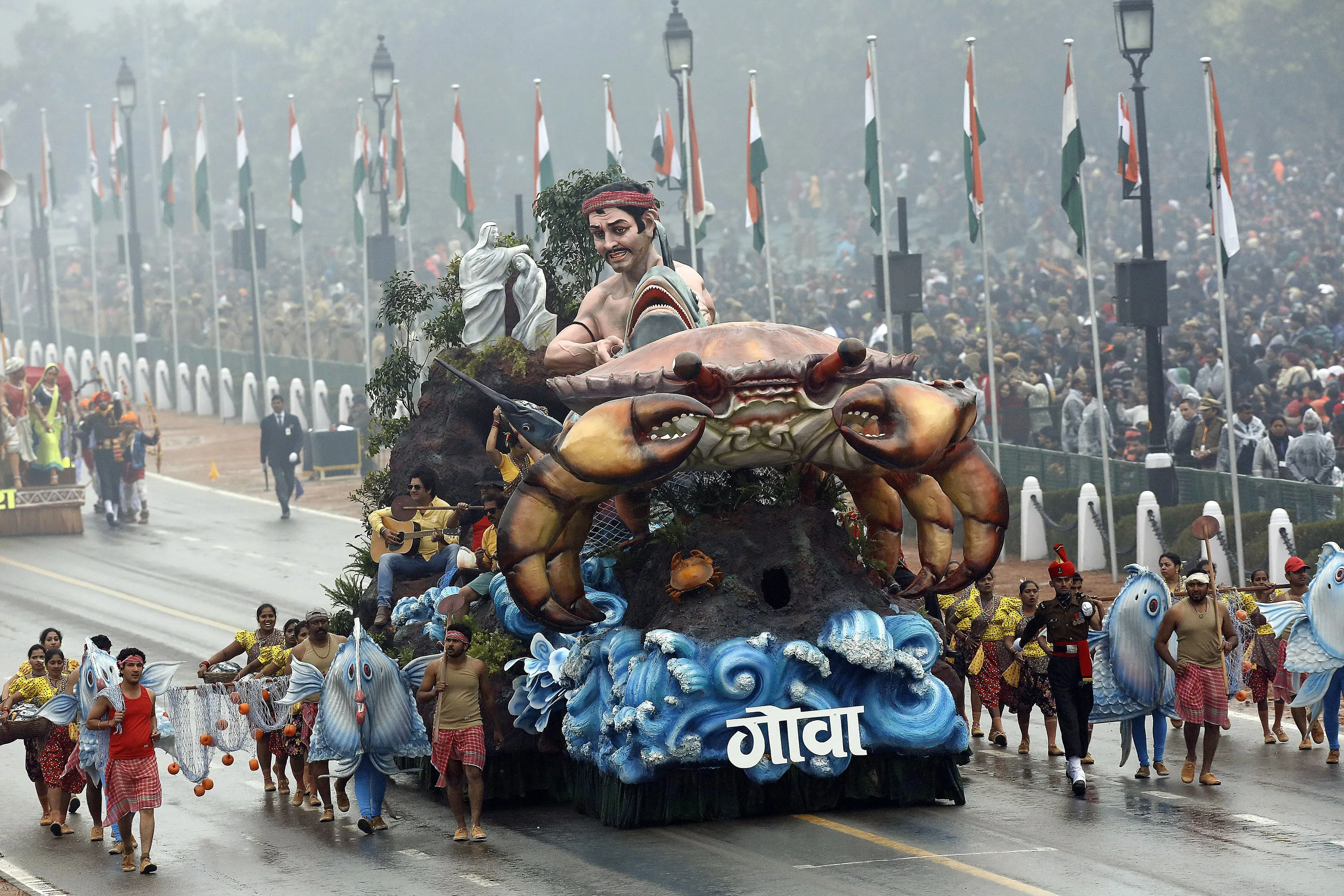 A float from the Indian state of Goa rolls down at Rajpath during the 66th Republic day function in New Delhi, India on 26 January 2015. President Obama is the first United States president to be guest of honour at India's annual Republic Day parade. (Photo by Harish Tyagi/EPA)