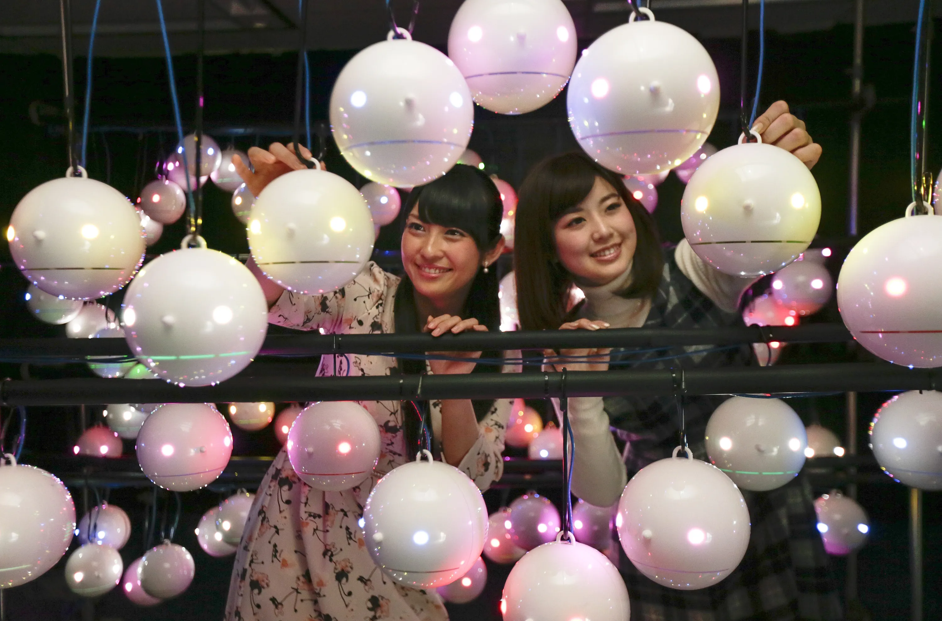 Weathernews casters Airi Yamagishi (L) and Akane Fujioka inspect pollen robots, observation equipment measuring pollen load ahead of the start of the hay-fever season at headquarters of Japan's weather information service company Weathernews at Makuhari in Chiba, east of Tokyo, Japan, 28 January 2015. Many people suffer from hay fever from early next month as the people are allergic to pollen. (Photo by Kimimasa Mayama/EPA)