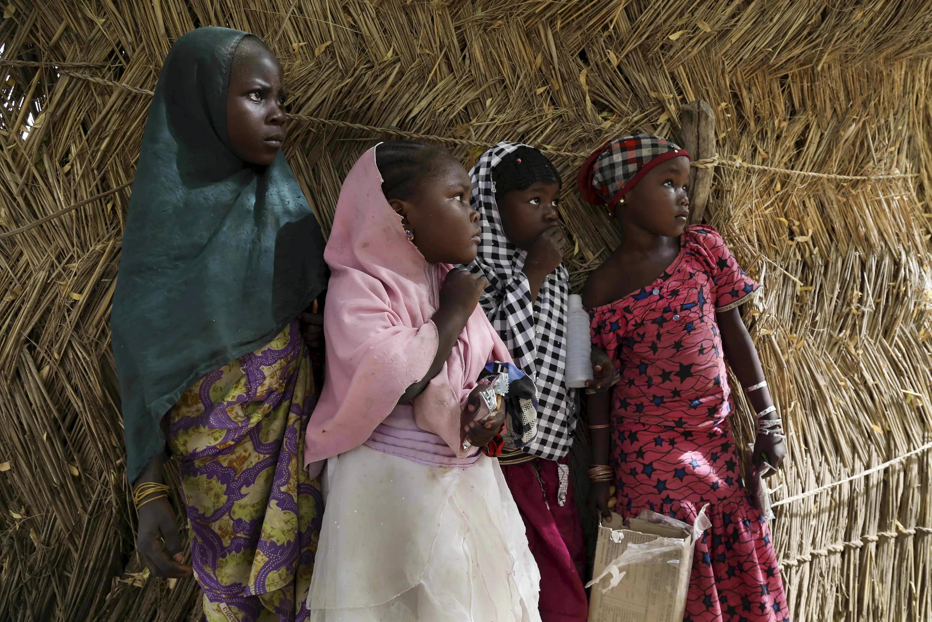 Girls watch soldiers from Niger and Chad in the recently retaken town of Damasak, Nigeria, March 20, 2015. Soldiers from Niger and Chad who liberated the Nigerian town of Damasak from Boko Haram militants have discovered the bodies of at least 70 people, many with their throats slit, scattered under a bridge, a Reuters witness said. (Photo by Emmanuel Braun/Reuters)