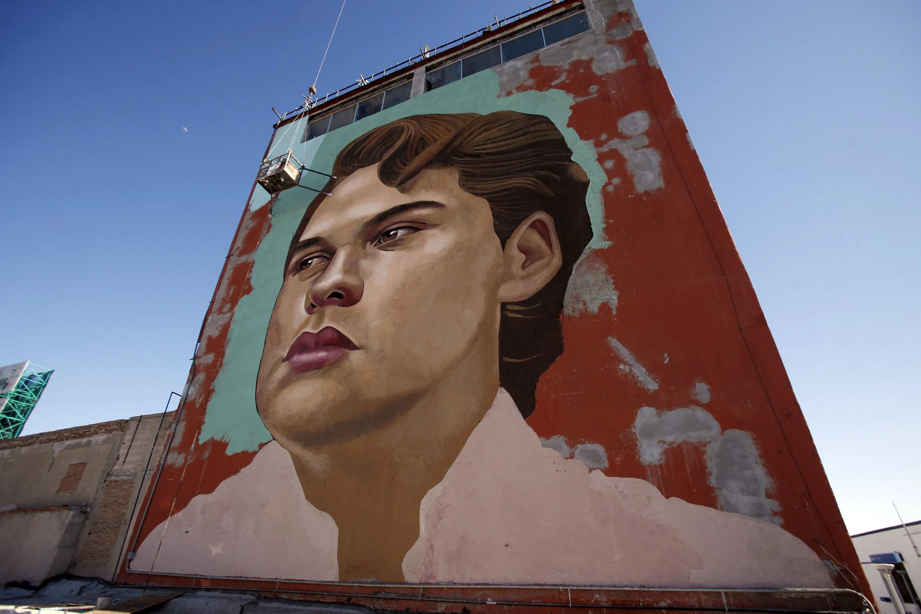 Artist Arturo Damasco paints a 40-square meters mural of Mexican singer Alberto Aguilera Valadez, better known as Juan Gabriel, in downtown Ciudad Juarez March 27, 2015. The mural is part of a government programme aimed to renew the historic center to attract tourism after years of drug violence, and to honor one of the main icons of the city, local media reported. (Photo by Jose Luis Gonzalez/Reuters)