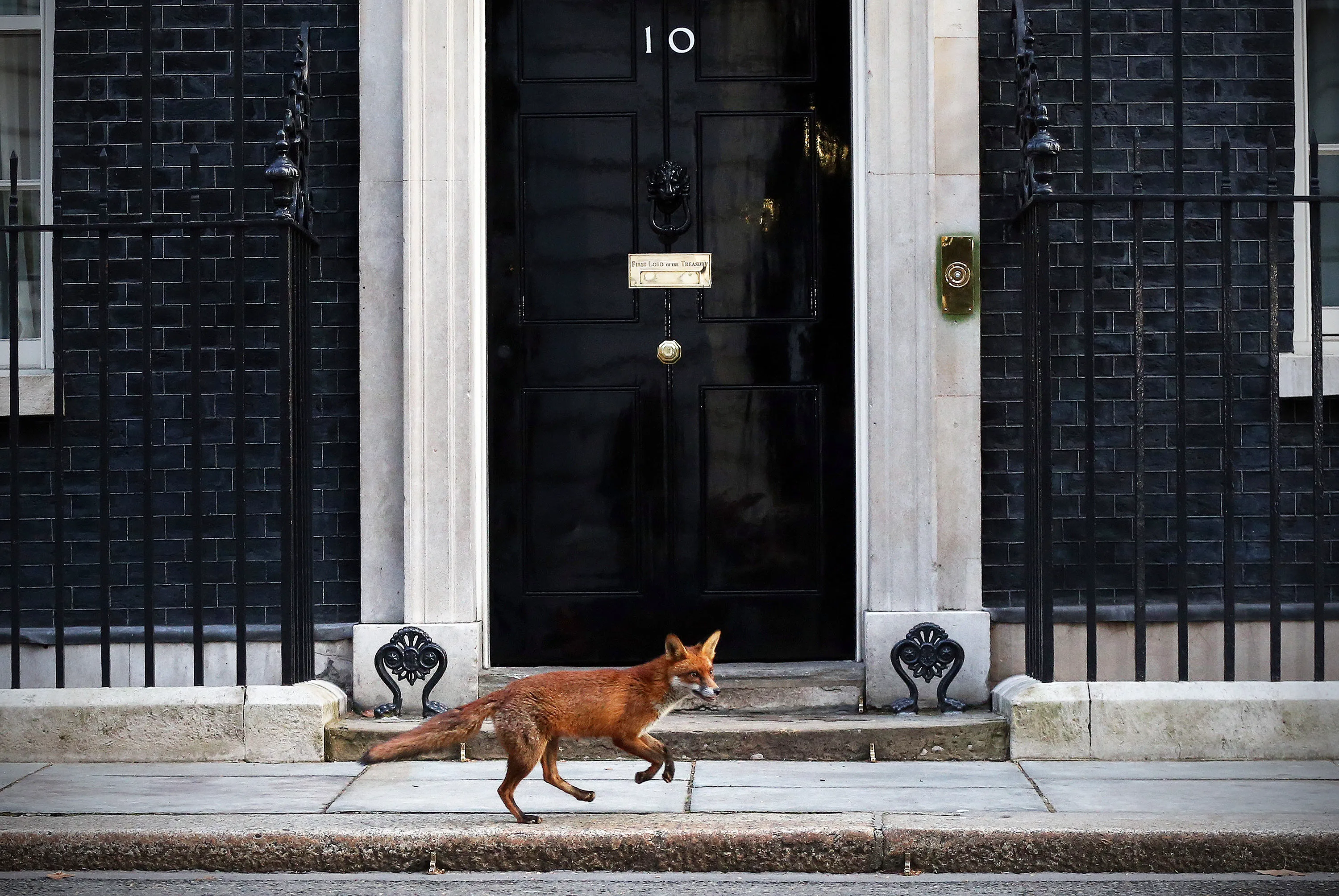 A fox runs in front of 10 Downing Street on March 30, 2015 in London, England. Campaigning in what is predicted to be Britain's closest national election in decades will start after Queen Elizabeth II dissolves Parliament today. (Photo by Carl Court/Getty Images)
