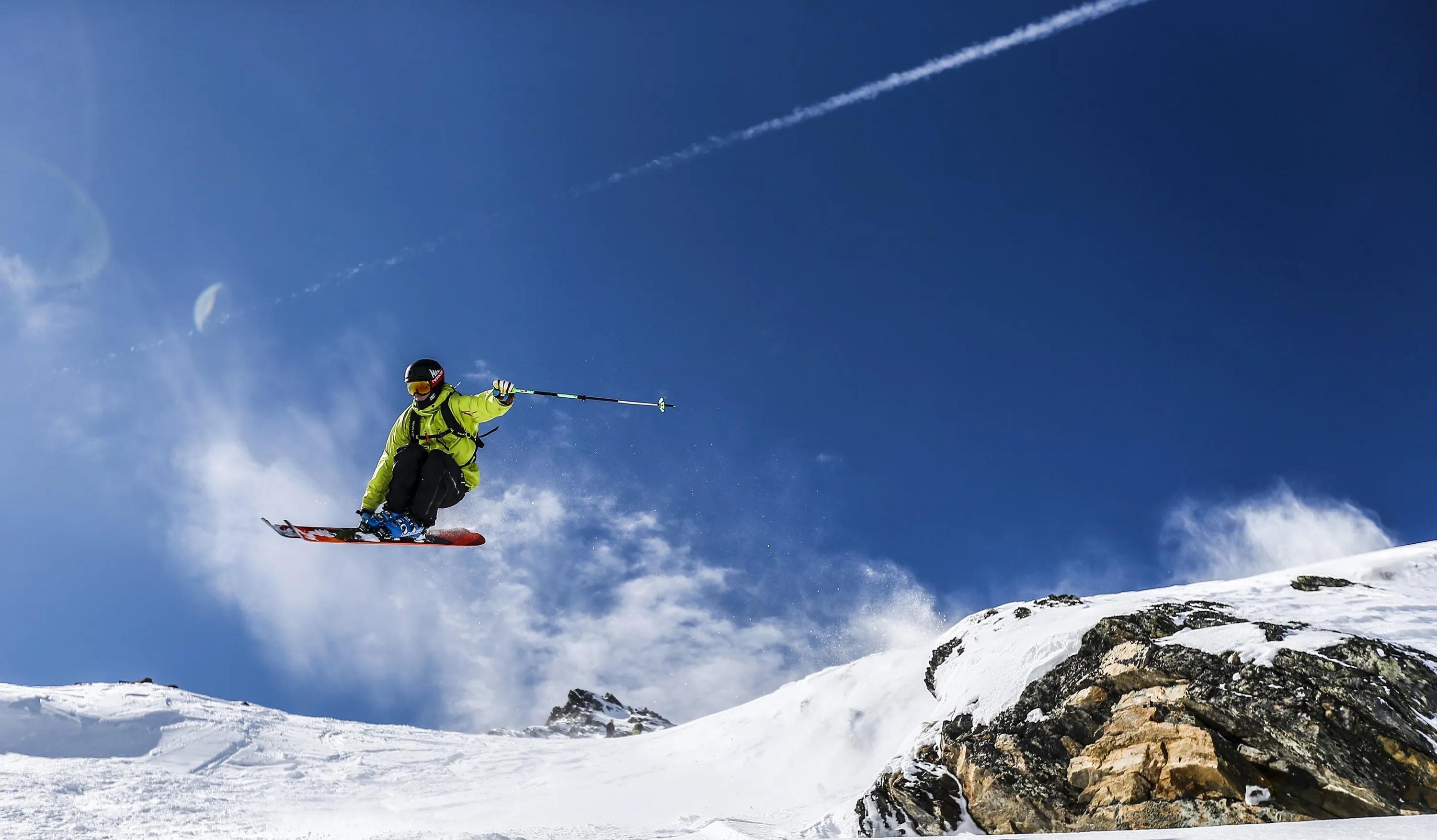 A skier jumps from a cliff in the western Austrian ski resort of Obergurgl April 8, 2015. (Photo by Dominic Ebenbichler/Reuters)