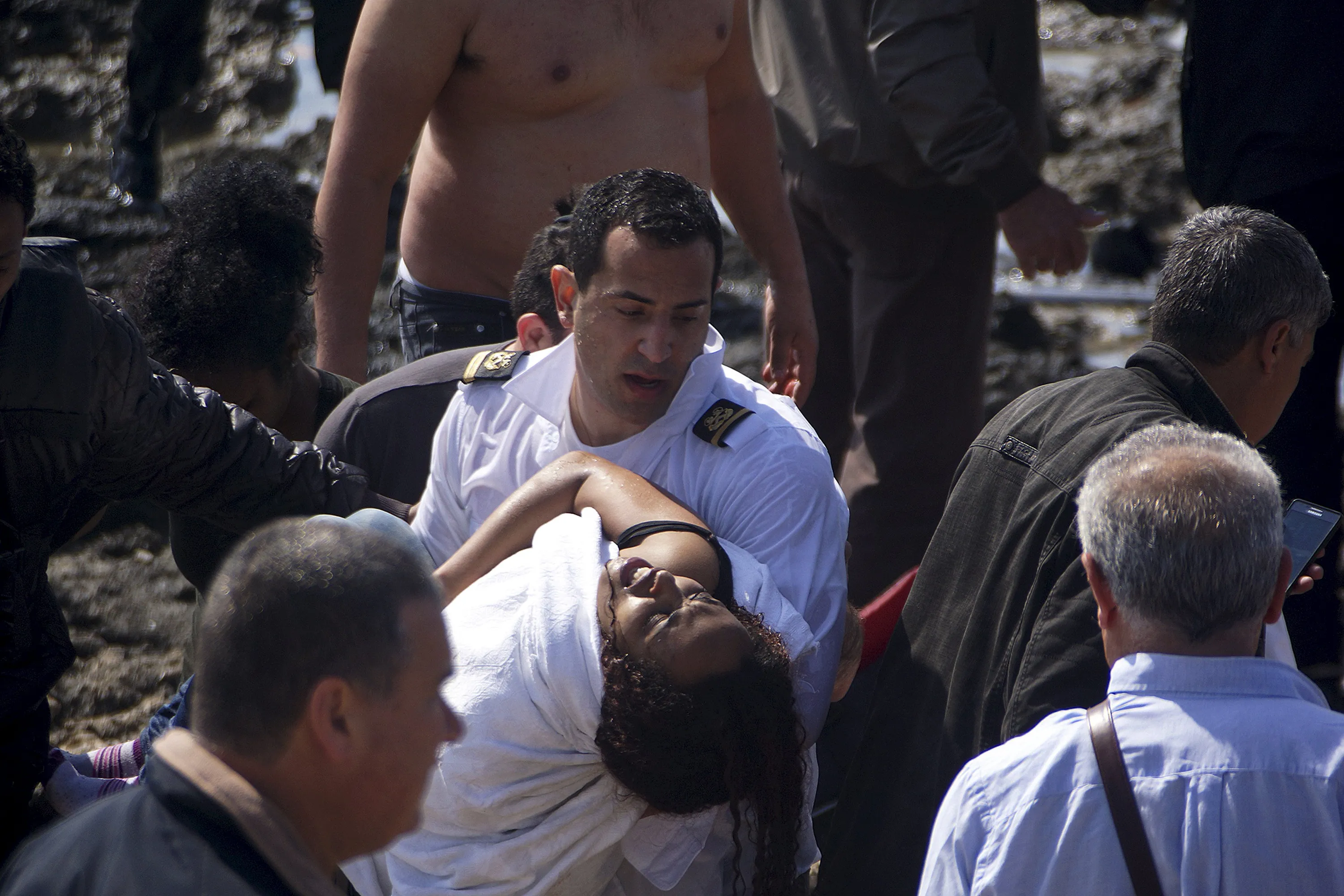 A migrant (C), trying to reach Greece, is carried by a Greek Coast guard officer at the coast of the southeastern island of Rhodes April 20, 2015. (Photo by Michalis Loizos/Reuters)