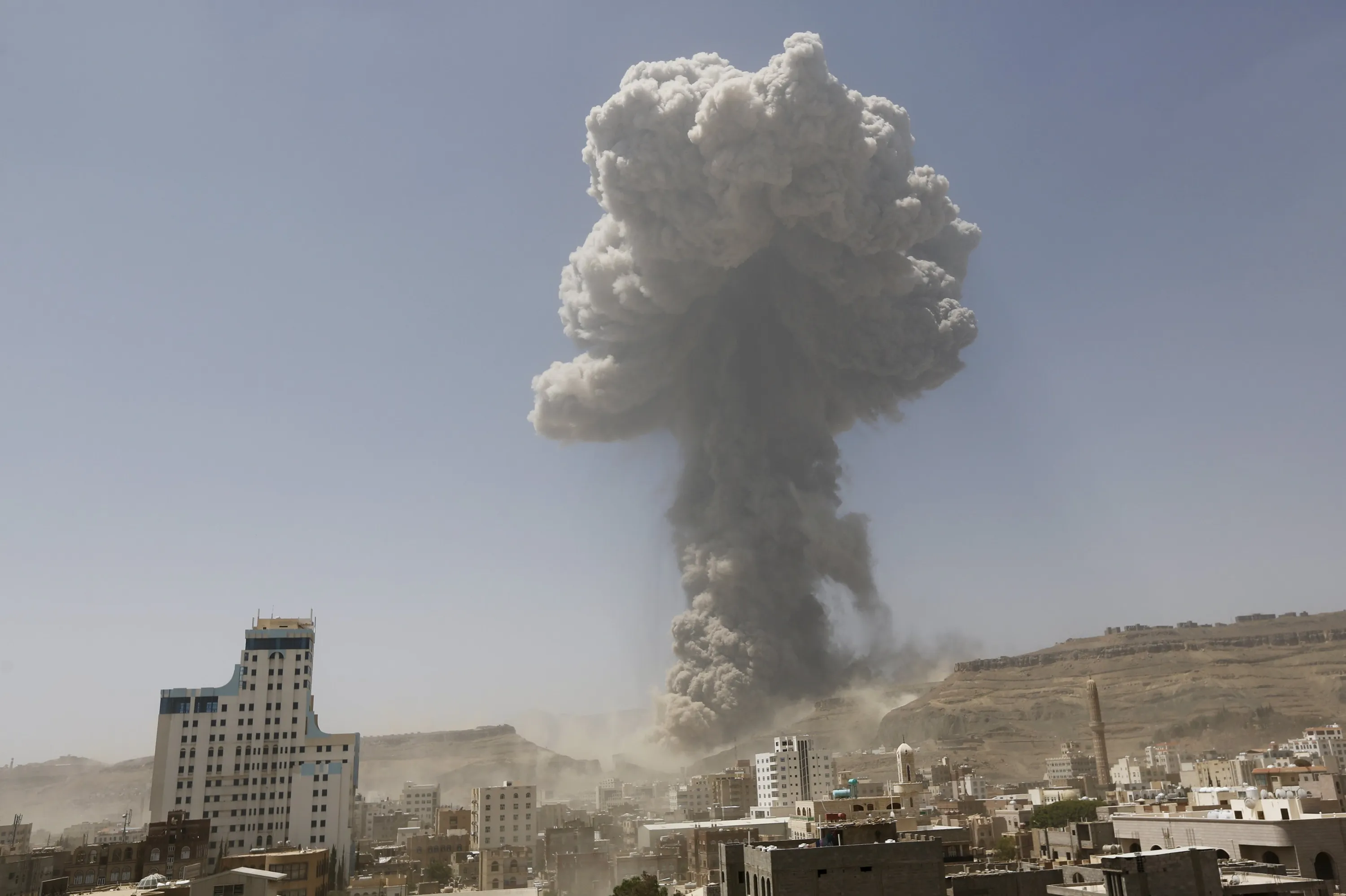 Smoke rises during an air strike on an army weapons depot on a mountain overlooking Yemen's capital Sanaa April 20, 2015. (Photo by Khaled Abdullah/Reuters)