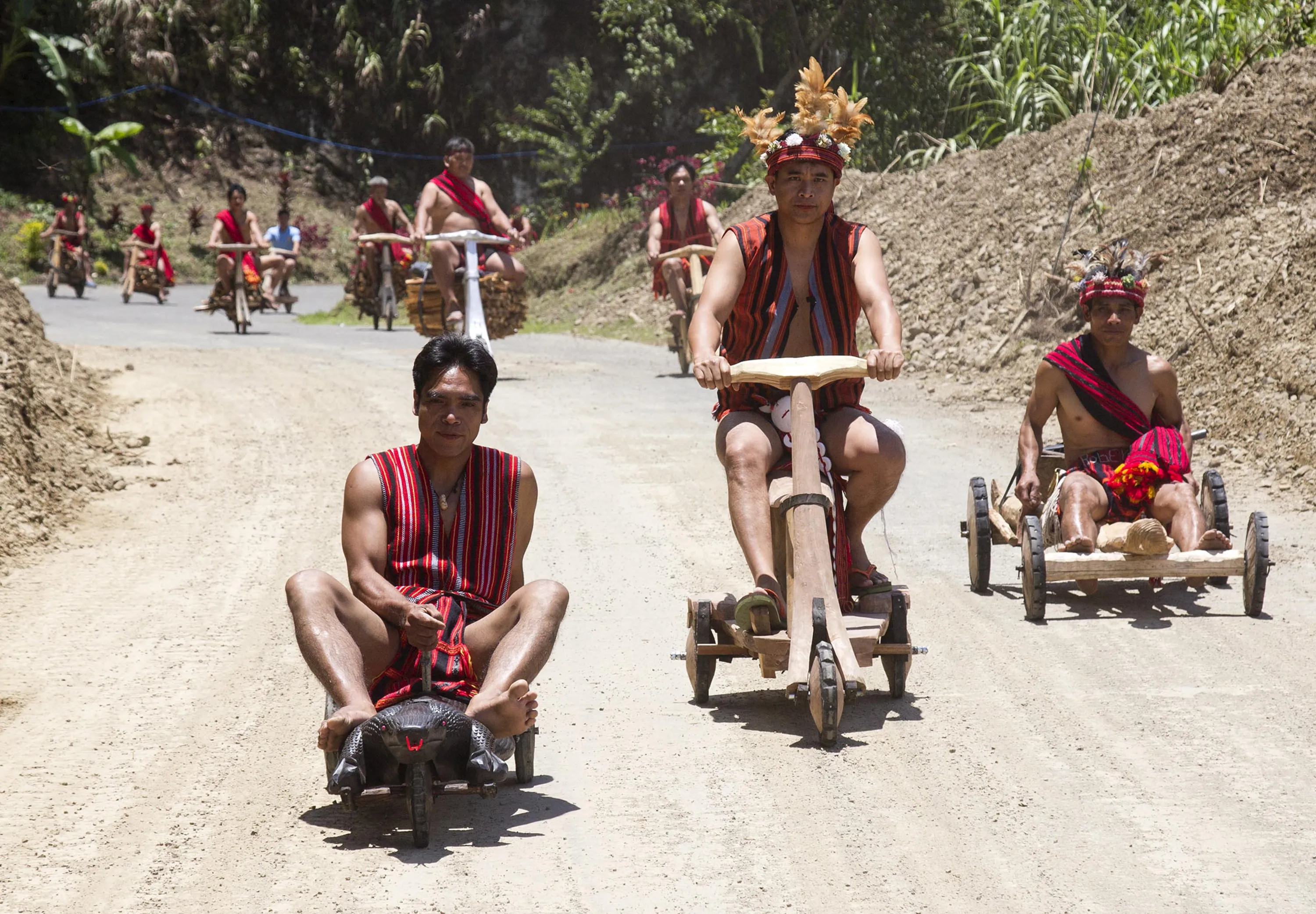 Filipino tribesmen participate in a wooden scooter race spanning 4.3 km (2.7 miles) in Banaue, Ifugao, north of Manila April 28, 2015. The race is part of the annual Imbayah festival. The festival showcases the rich culture and the ingenuity of the villagers whose ancestors carved the famous Ifugao rice terraces more than 2,000 years ago. (Photo by Harley Palangchao/Reuters)