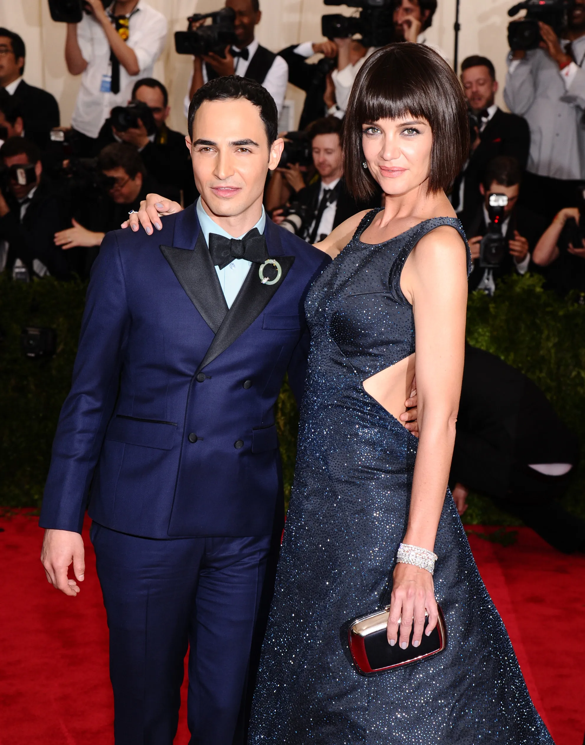Zac Posen, left, and Katie Holmes arrive at The Metropolitan Museum of Art's Costume Institute benefit gala celebrating “China: Through the Looking Glass” on Monday, May 4, 2015, in New York. (Photo by Charles Sykes/Invision/AP Photo)