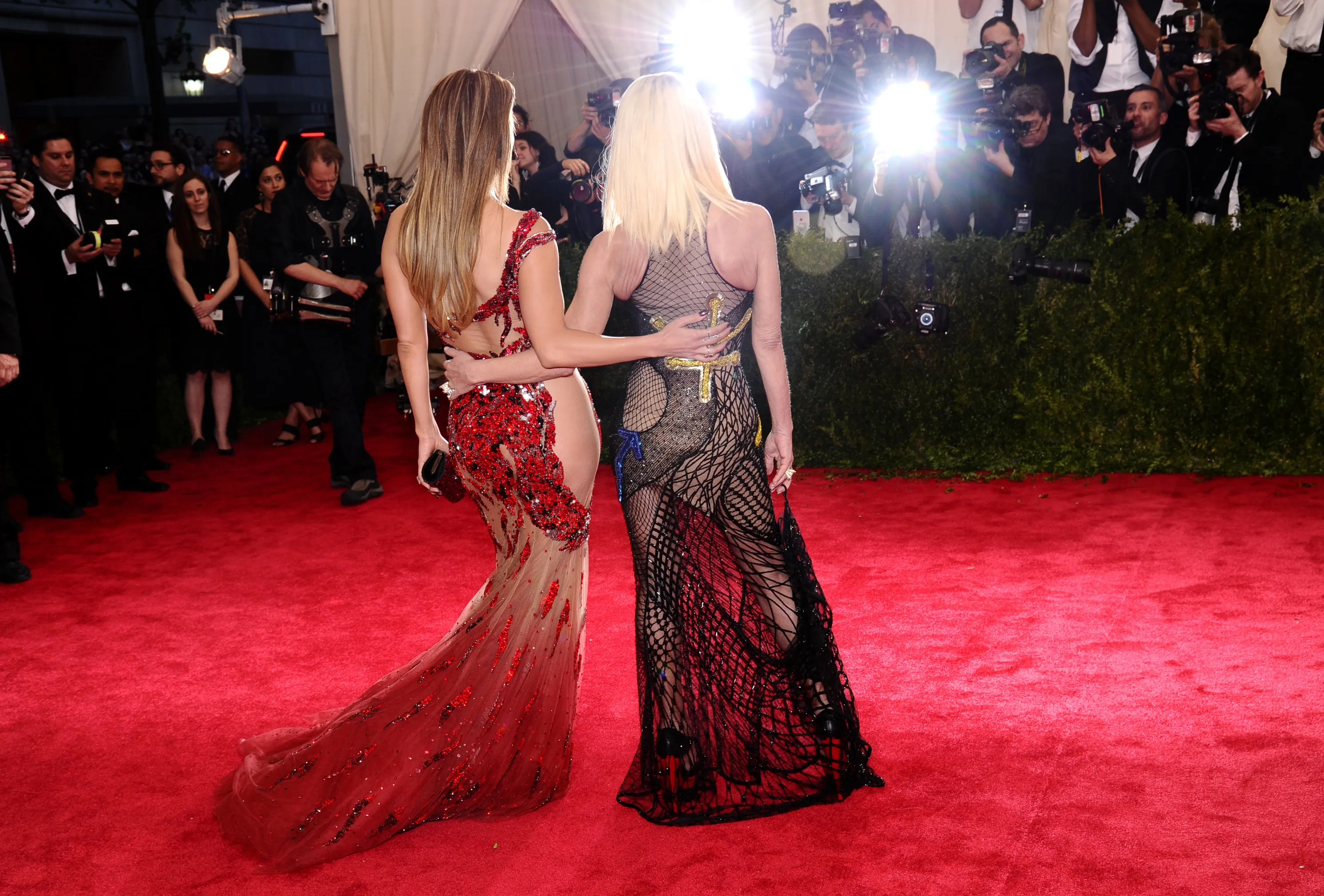 Jennifer Lopez, left, and Donatella Versace arrive at The Metropolitan Museum of Art's Costume Institute benefit gala celebrating “China: Through the Looking Glass” on Monday, May 4, 2015, in New York. (Photo by Charles Sykes/Invision/AP Photo)