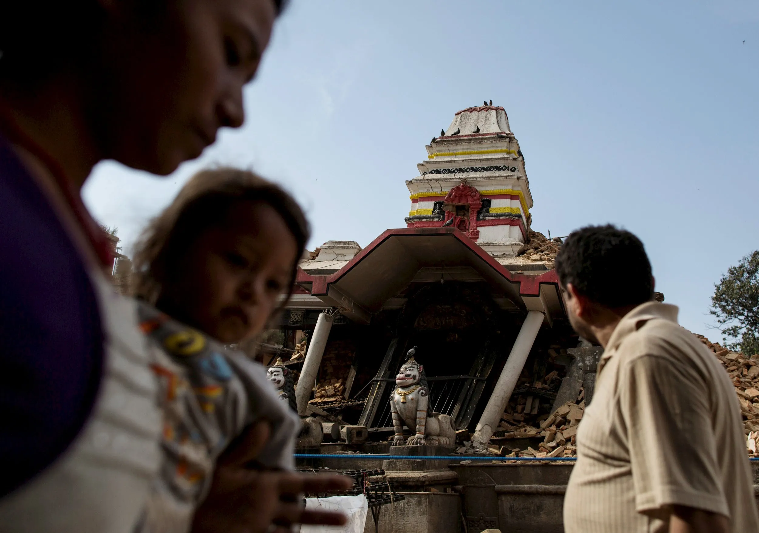 People walk past a collapsed temple following last week's earthquake at Khokana in Lalitpur, Nepal, May 2, 2015. (Photo by Danish Siddiqui/Reuters)