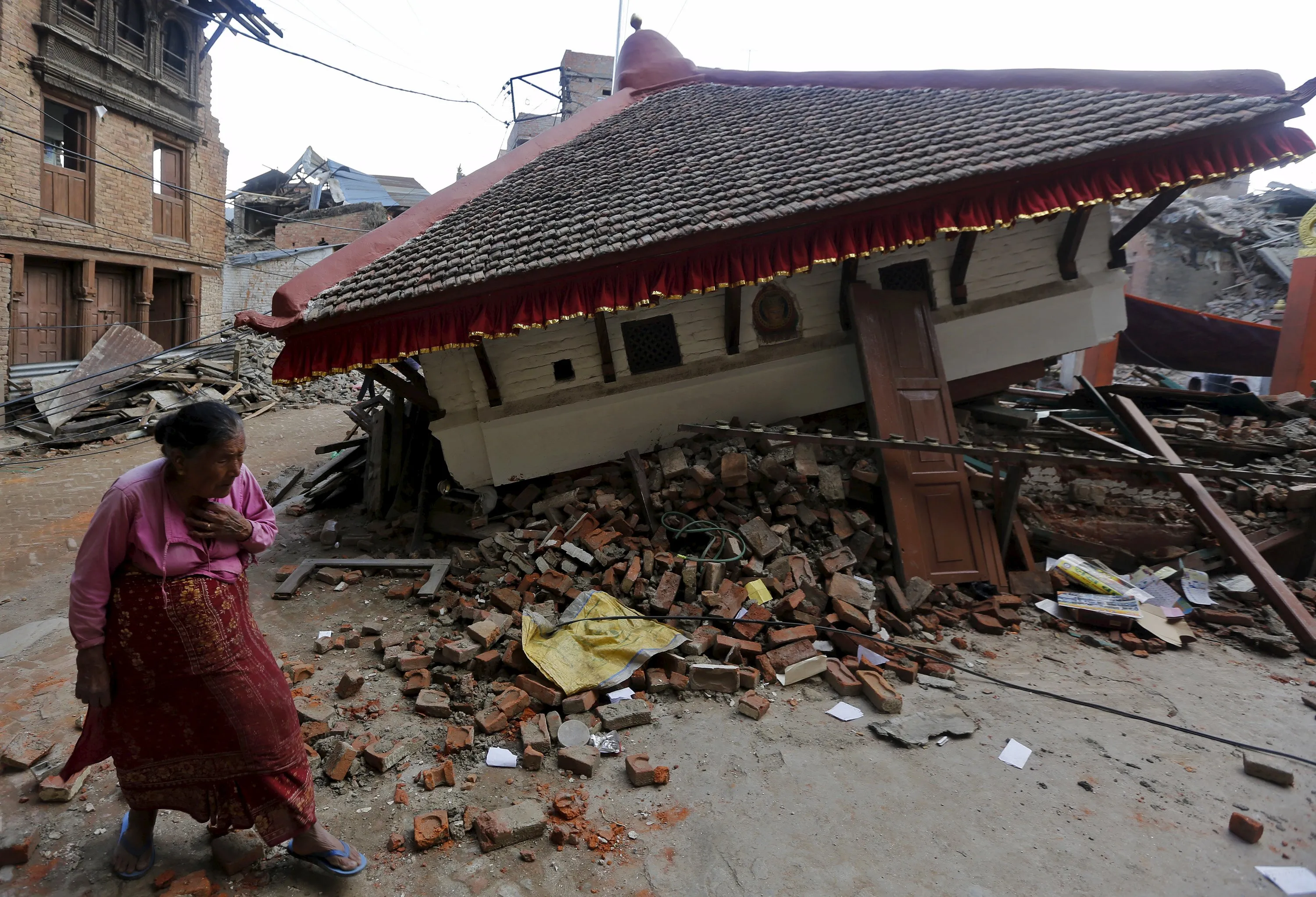 An earthquake victim walks past a collapsed temple in Sankhu, on the outskirts of Kathmandu, May 2, 2015. (Photo by Adnan Abidi/Reuters)