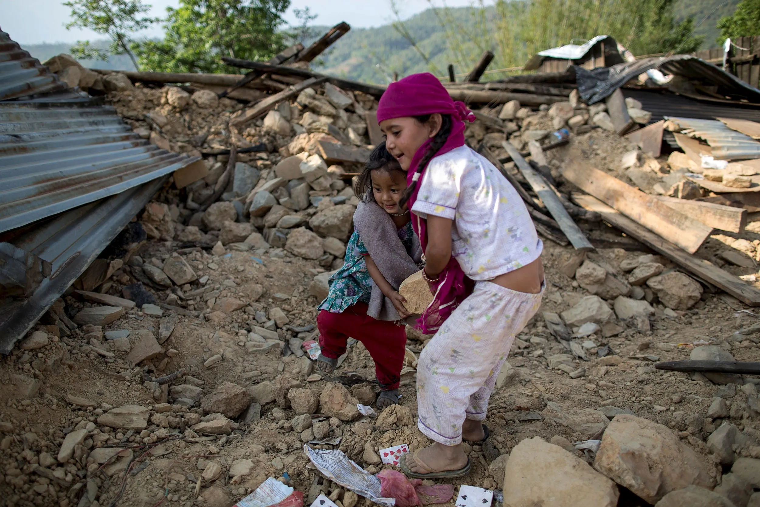 Reshmila, 8, (R) and Shamjana, 5, throw debris as they play at the site of their collapsed house after an earthquake in a village in Sindhupalchowk, Nepal, May 2, 2015. (Photo by Danish Siddiqui/Reuters)
