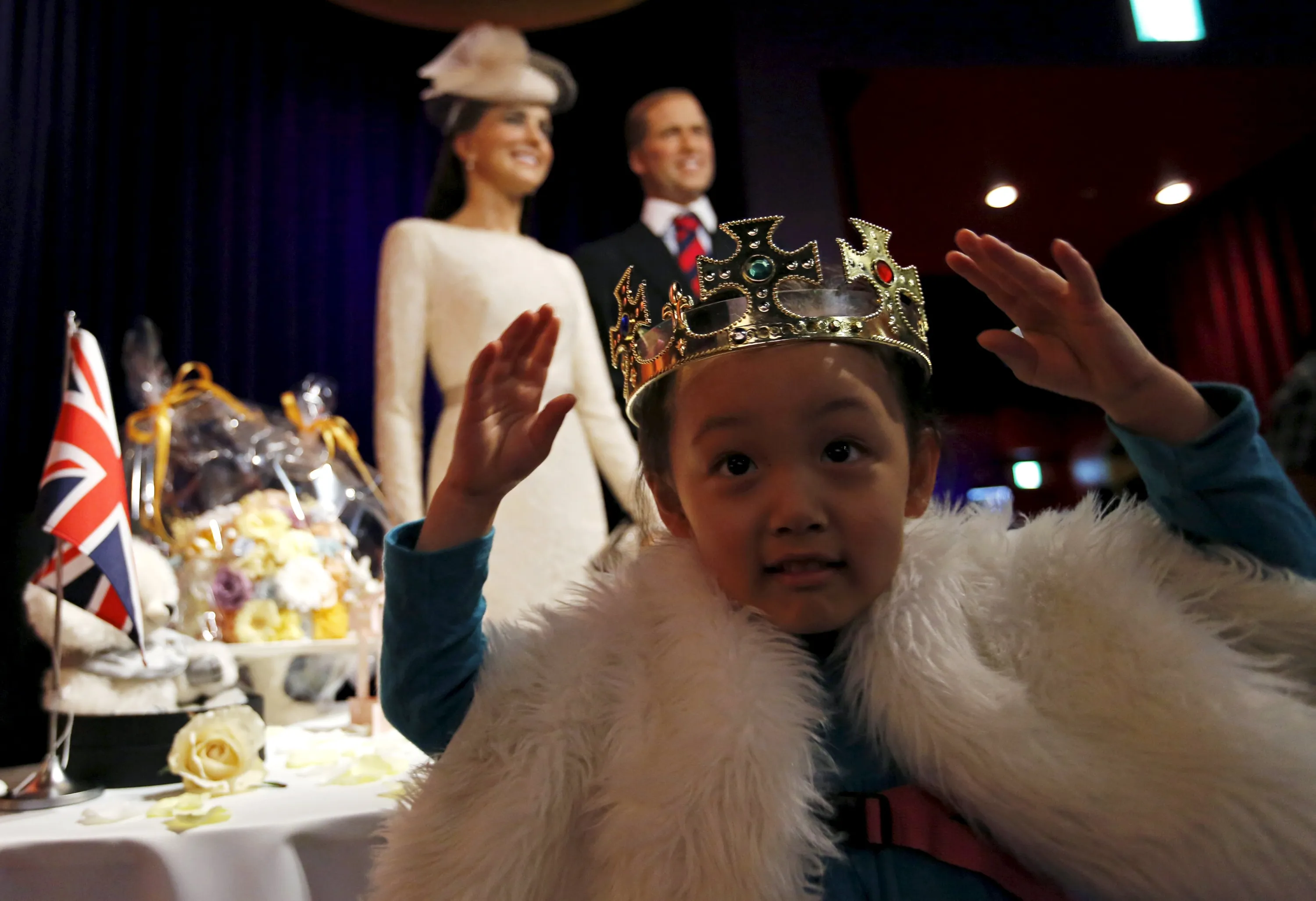 Visitor Kokoro Inao, 4, poses in front of wax figures of Britain's Prince William and Kate Middleton, Duchess of Cambridge, at the Madame Tussauds Tokyo wax museum in Tokyo May 3, 2015. Britain's Duchess of Cambridge, the wife of Prince William, gave birth to a girl on Saturday, the couple's second child and a great grand-daughter to Queen Elizabeth. (Photo by Toru Hanai/Reuters)