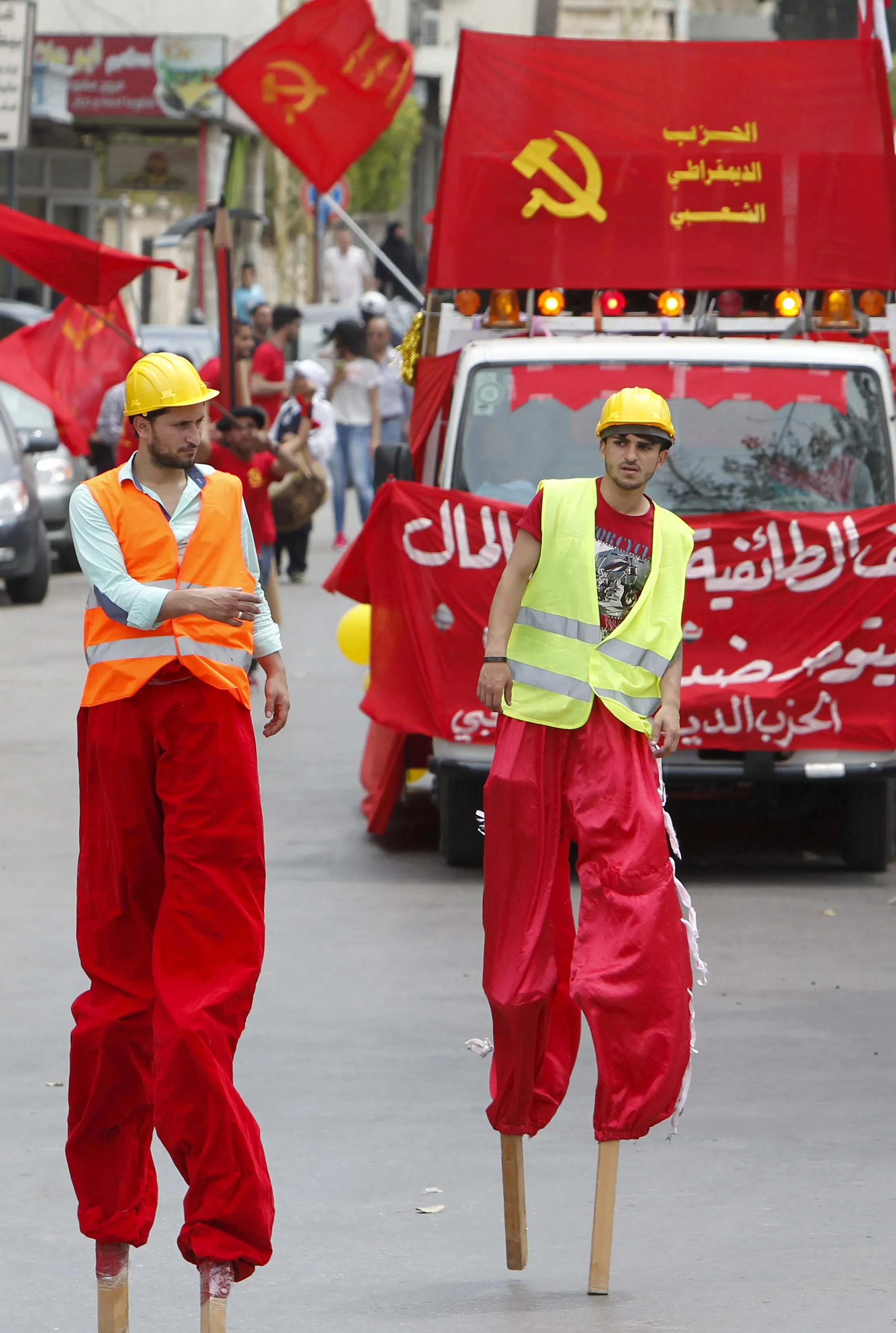 Stilt walkers attend a march organised by the Lebanese Communist party to mark Labour Day in Sidon, south Lebanon May 3, 2015. (Photo by Ali Hashisho/Reuters)