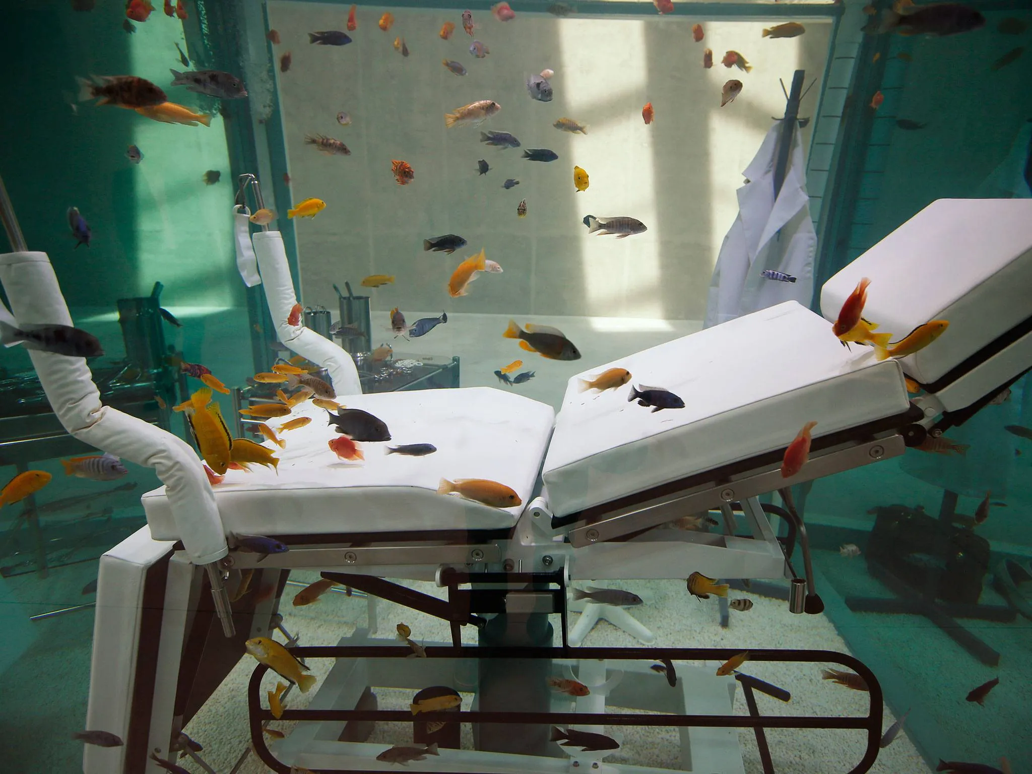 “'Lost love” a creation by artist Damien Hirst is displayed at the Prada foundation art exhibitions space in Milan, Italy, Friday, May 8, 2015. The Prada Foundation is opening a new exhibit space designed by architect Rem Koolhaas with a bar created by director Wes Anderson, whose unique stylistic vision has come through in such films as “The Grand Budapest Hotel” and “Moonrise Kingdom”. (Photo by Luca Bruno/AP Photo)