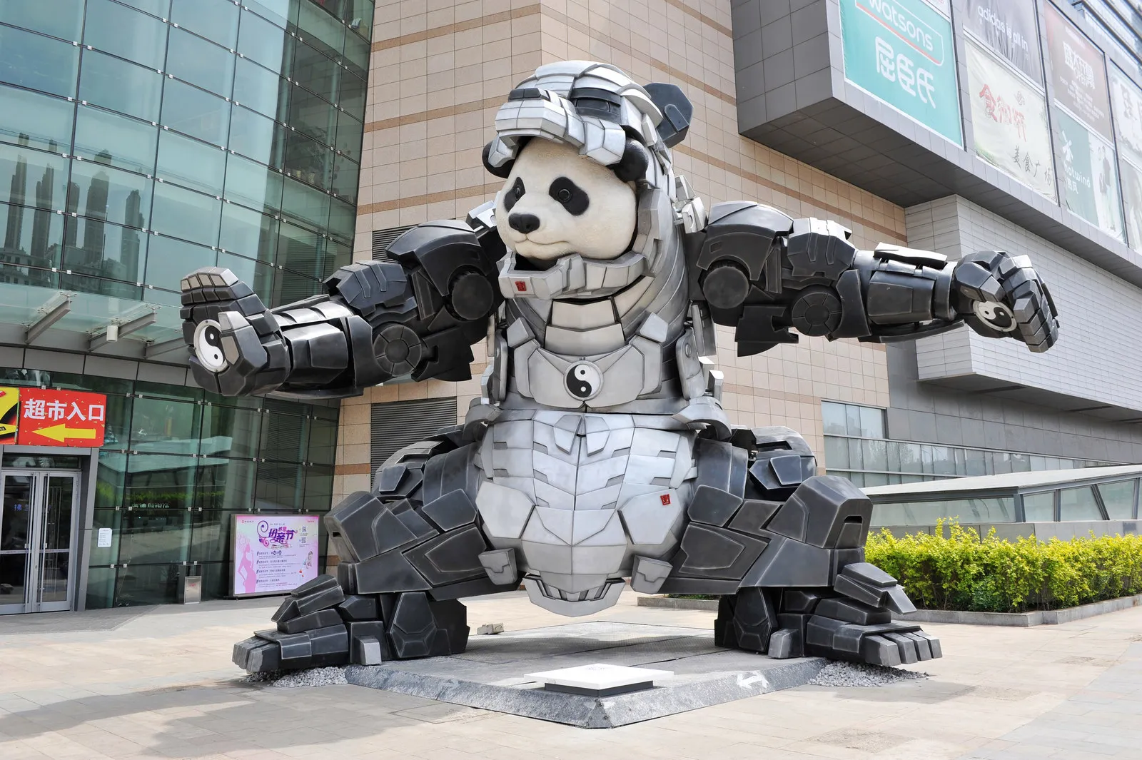 A 9-meter-high panda covered with iron is seen in front of Uni Park on May 7, 2015 in Shenyang, Liaoning province of China. An Iron Panda, which is 9-meter high and 7-meter wide, is on display in northwest China's Shenyang. It's said that the panda was created by post 80s boy Bi Sheng, an artist graduated from Sculpture Department of China Central Academy of Fine Arts. (Photo by ChinaFotoPress via Getty Images)