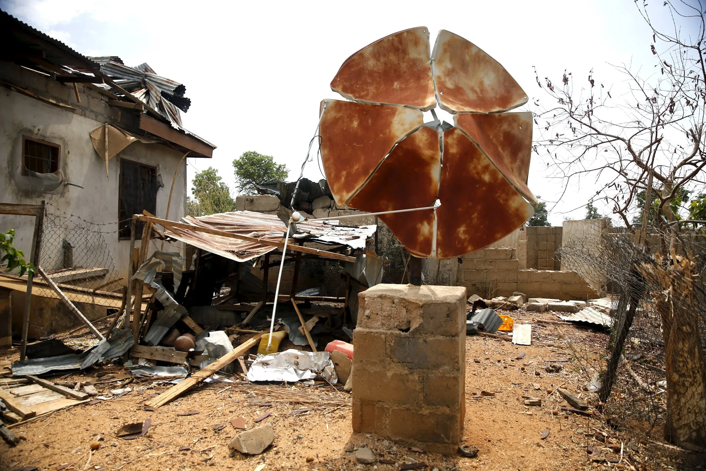 A broken satellite dish is seen at a destroyed residence in the town of Mararaba after the Nigerian military recaptured it from Boko Haram, in Adamawa state May 10, 2015. (Photo by Akintunde Akinleye/Reuters)