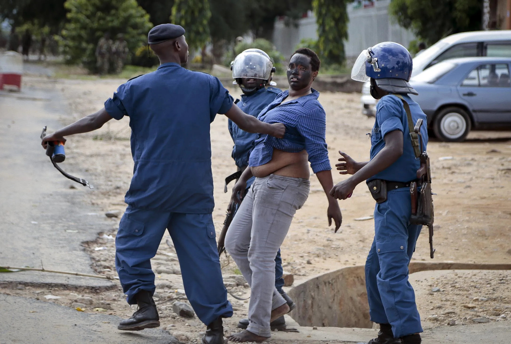 A demonstrator trying to march to the town center is arrested by police, in the Ngagara district of Bujumbura, Burundi Wednesday, May 13, 2015. A police officer opened fire at protesters in Burundi's capital Wednesday as demonstrations against the president's bid for a third term heated up, with troops surrounding the national radio station. (Photo by Gildas Ngingo/AP Photo)