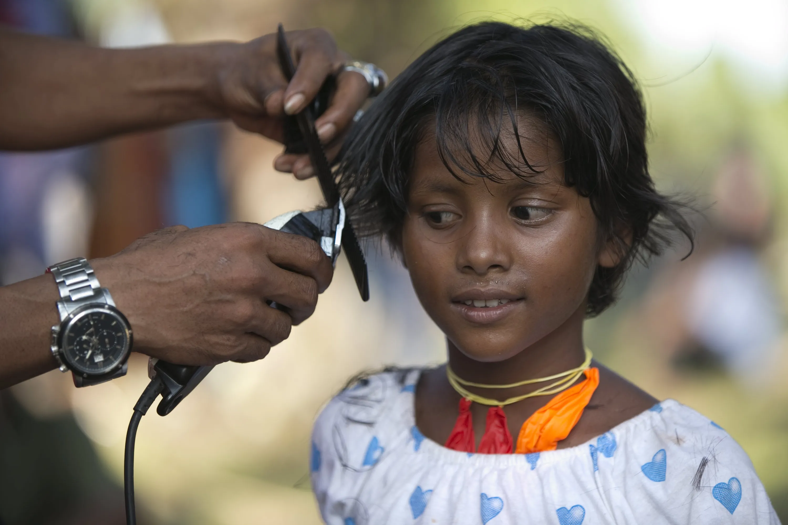 A young Rohingya migrant, who arrived in Indonesia this week by boat, has her hair cut by a volunteer at a temporary shelter in Aceh Timur regency, near Langsa in Indonesia's Aceh Province May 24, 2015. (Photo by Darren Whiteside/Reuters)