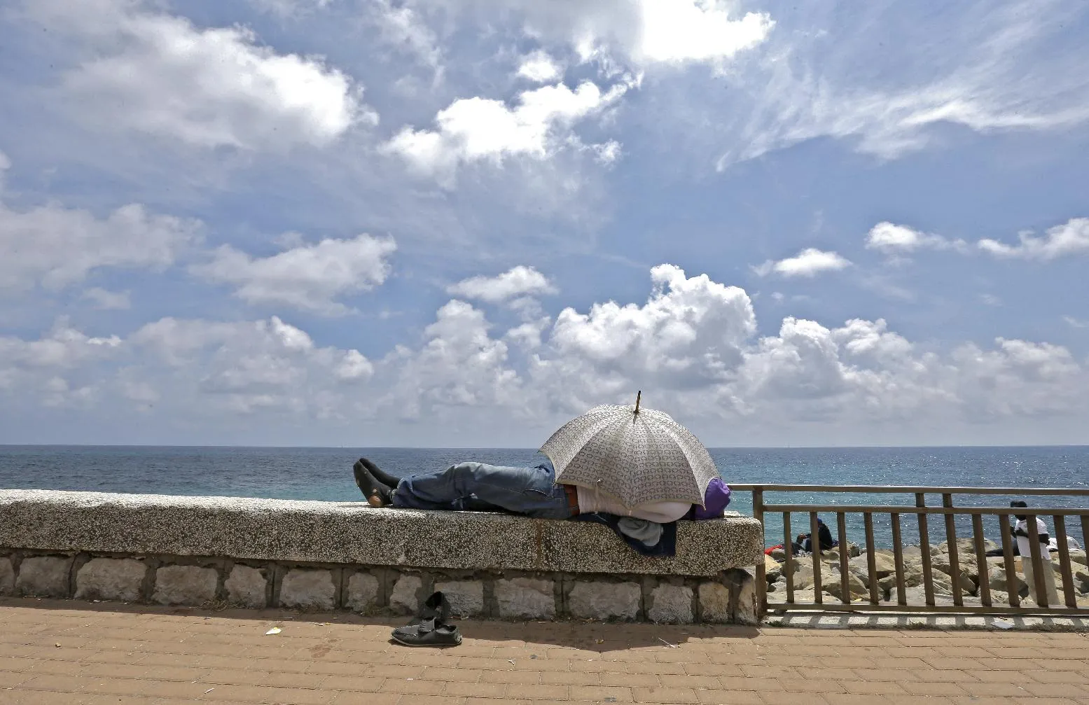 A migrant sleeps near the Franco-Italian border near Menton, southeastern France, Tuesday, June 16, 2015. Some 100 migrants, principally from Eritrea and Sudan, attempted since last Friday, to cross the border from Italy and have been blocked by French and Italian gendarmes. (AP Photo/Lionel Cironneau)