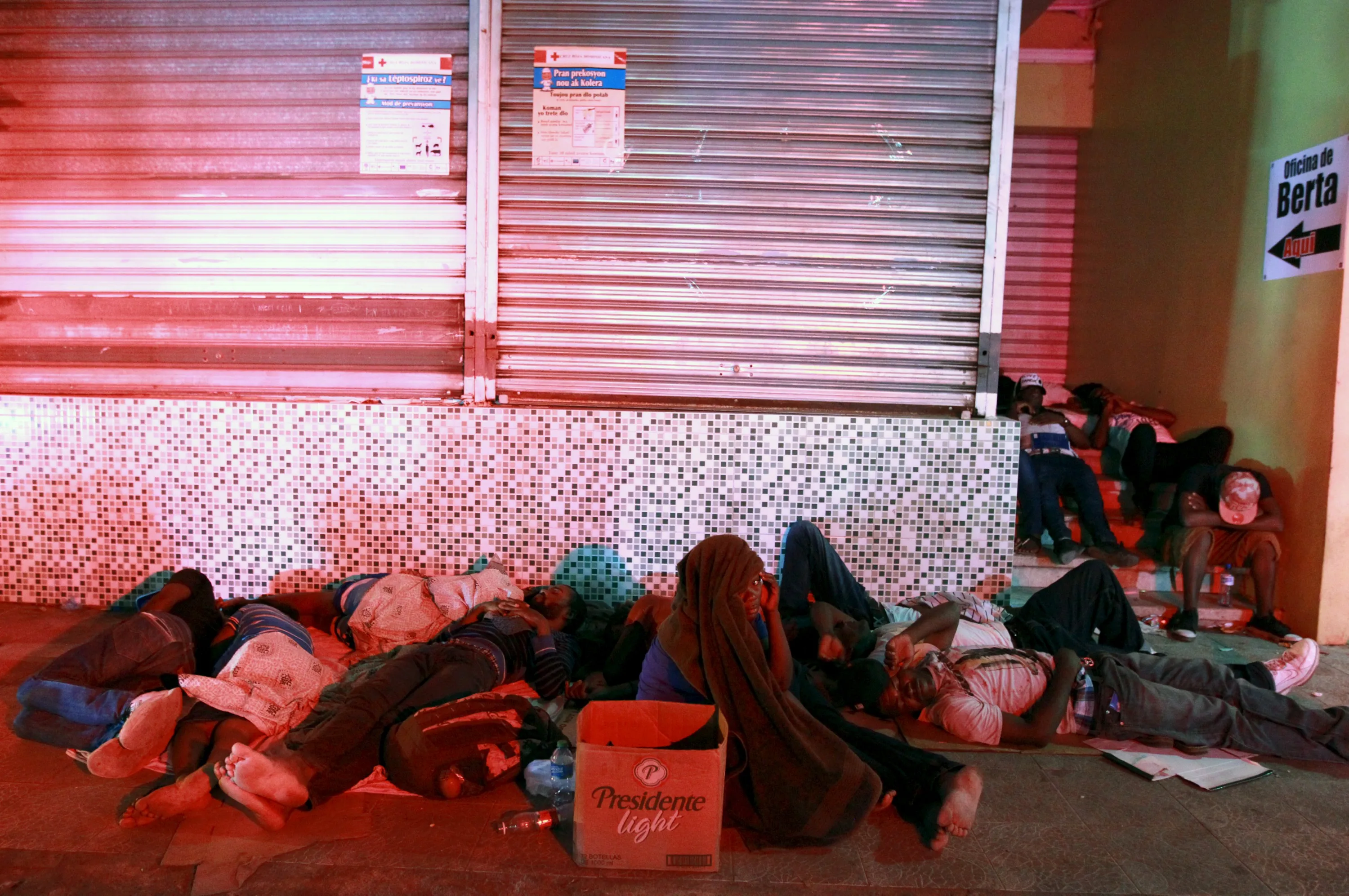 Haitians sleep on the street outside the Ministry of Interior and Police while waiting to register in Santo Domingo June 17, 2015. A deadline for enforcement of a new immigration law on Wednesday night is raising fears in the Dominican Republic of mass deportations of thousands of Haitian migrants as well as stateless Dominicans of Haitian descent. Dominican officials say anyone lacking proper identity documents or who has not registered for a so-called "regularization" program before the deadline could face deportation. REUTERS/Ricardo Rojas