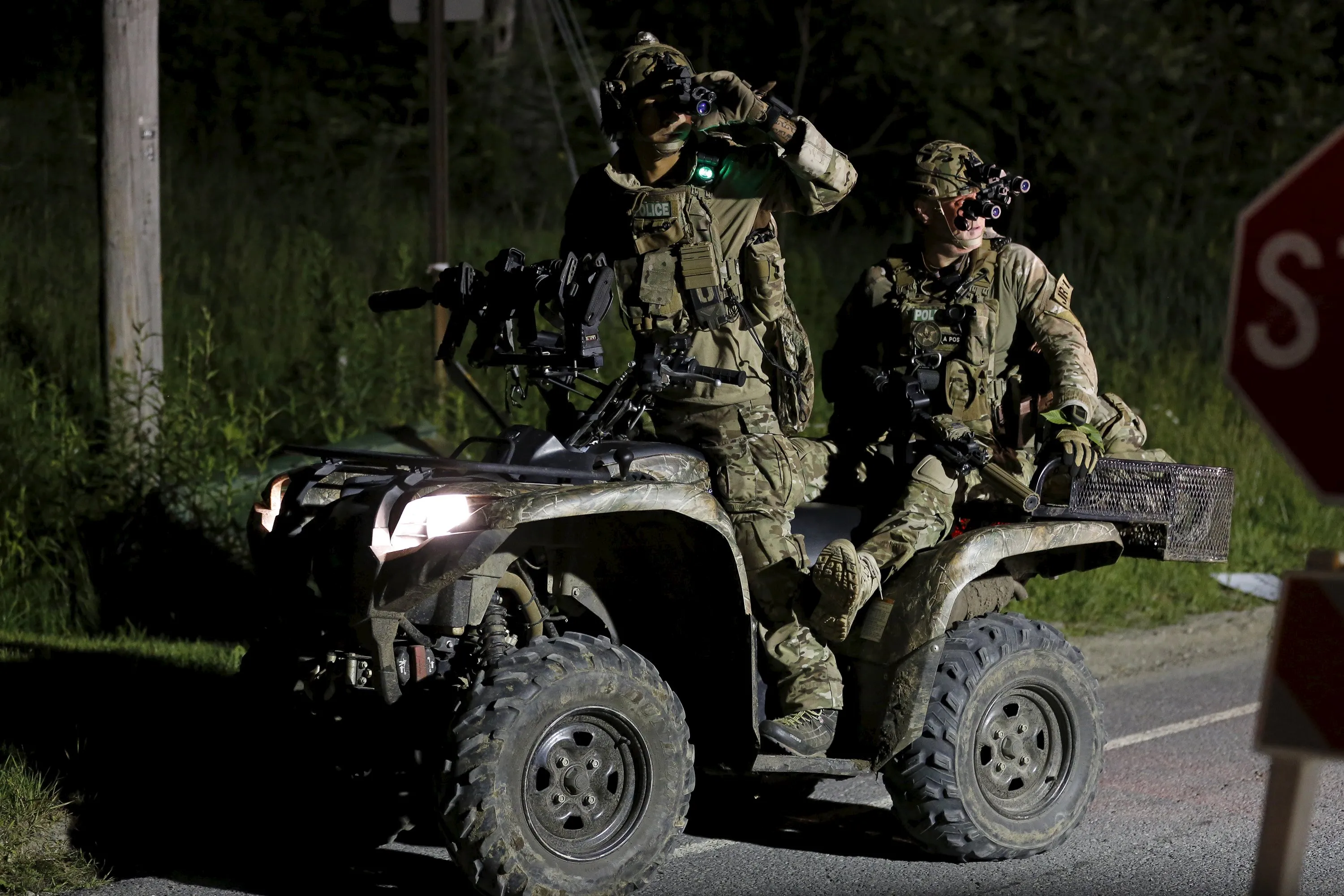 Law enforcement agents ride an all-terrain vehicle during a search for escaped prisoners south of Malone, New York June 26, 2015. Law enforcement officers shot and killed a man who is believed to be one of two prisoners who broke out of a maximum security prison in New York three weeks ago and the second escapee is still at large near the Canadian border, police said on Friday. (Photo by Chris Wattie/Reuters)