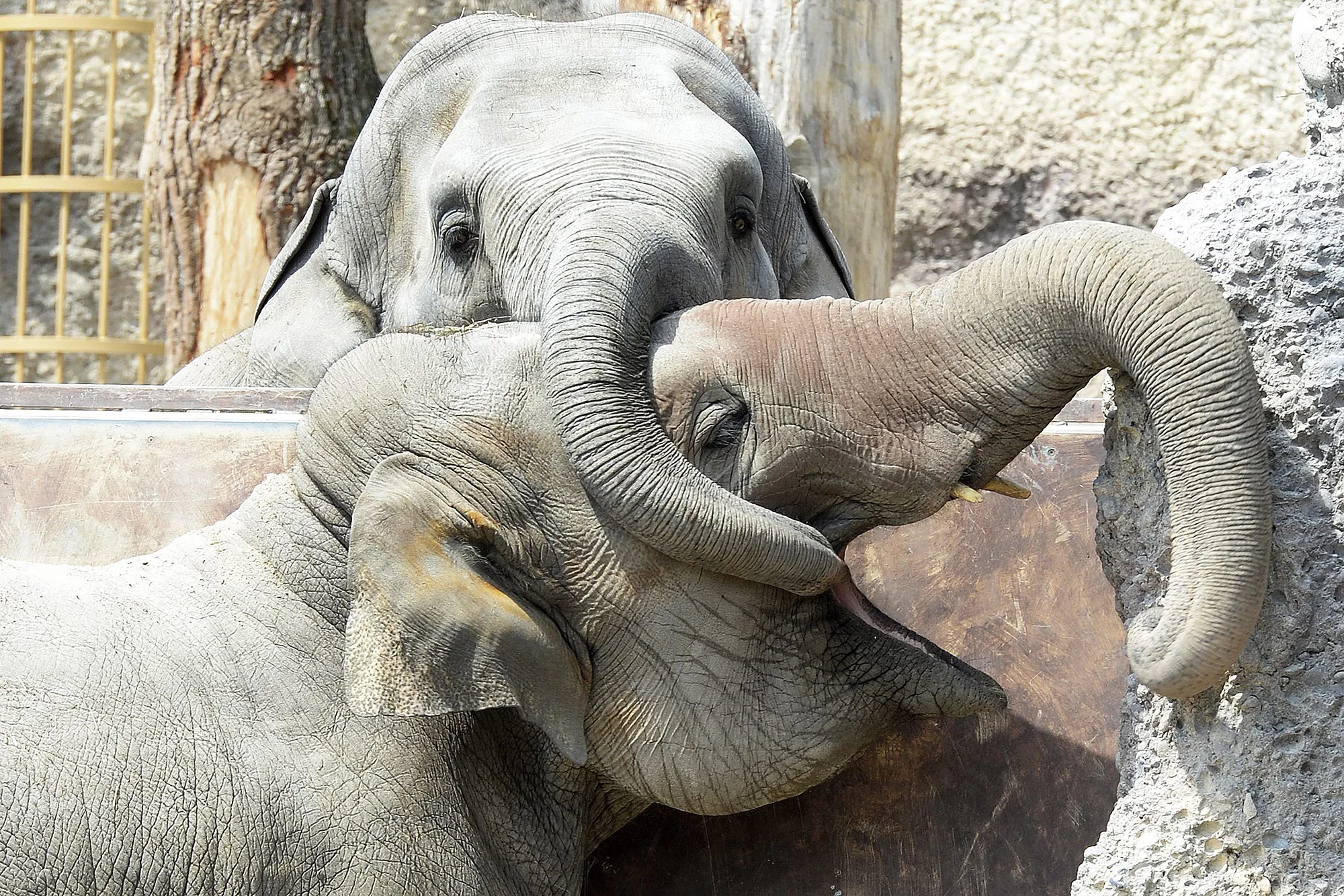 Elephants in their enclosure in the Kaeng Krachan Elephant Park of the Zuerich Zoo in Zuerich, Switzerland, 17 June 2015. (Photo by Walter Bieri/EPA)