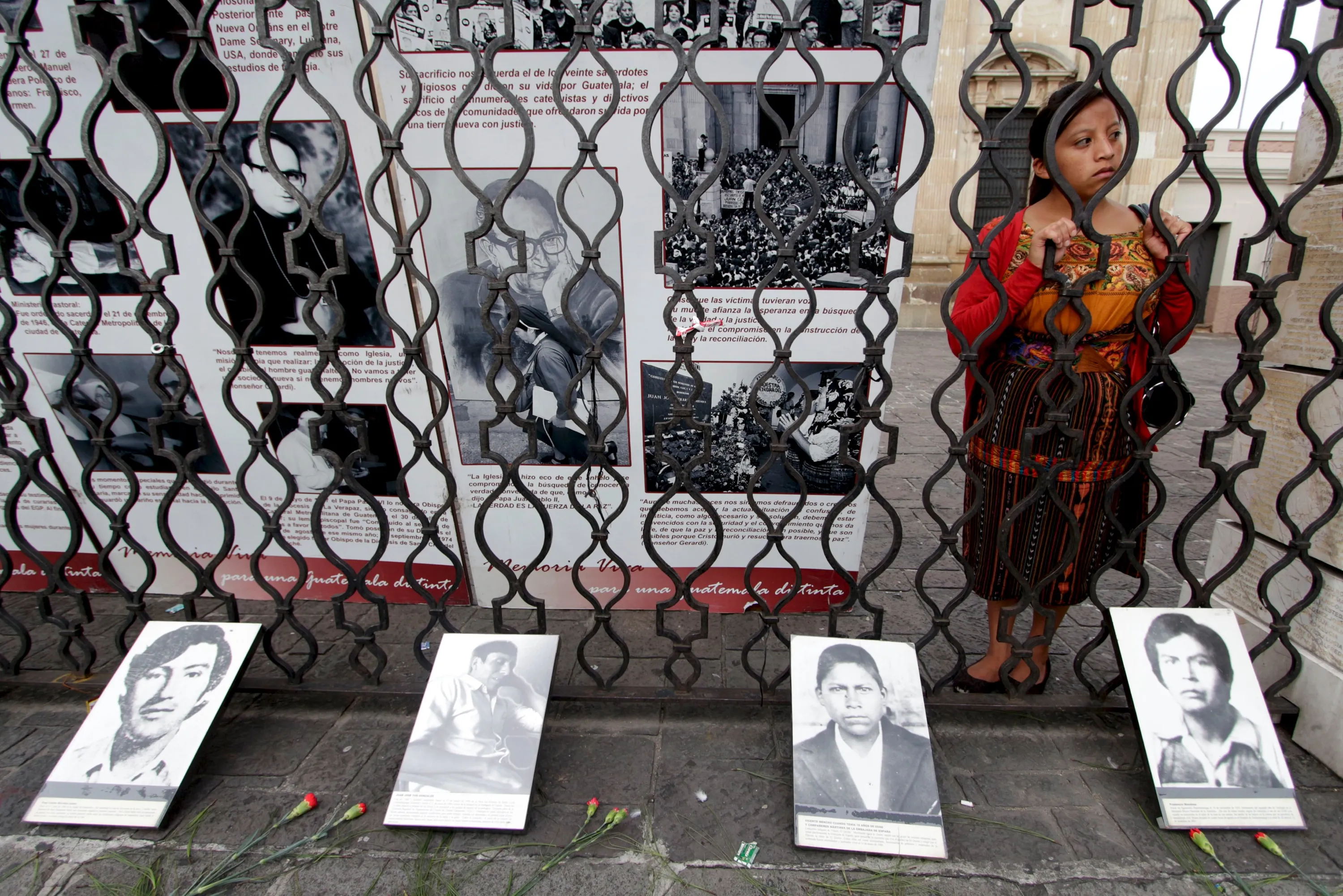 A girl stands next to pictures of missing people during a protest against the commemoration of the 144th anniversary of the founding of the Guatemalan Army, in Guatemala City June 30, 2015. (Photo by Josue Decavele/Reuters)