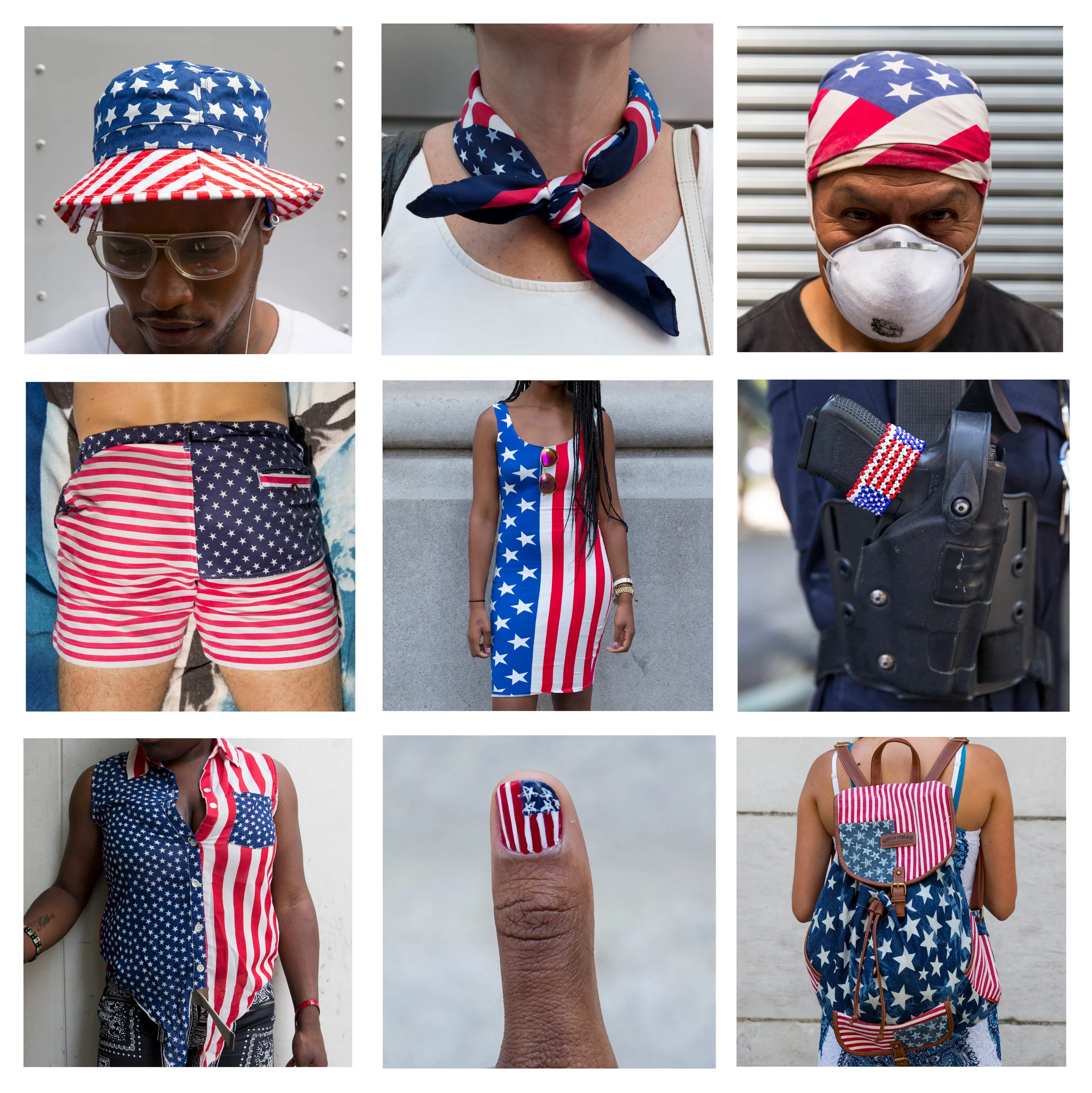 Different ways of wearing the U.S. flag are seen in this combination picture of images taken in New York on July 2 and July 3, 2015, ahead of the Fourth of July holiday. The U.S. celebrates its Independence Day on July 4. (Photo by Andrew Kelly/Reuters)