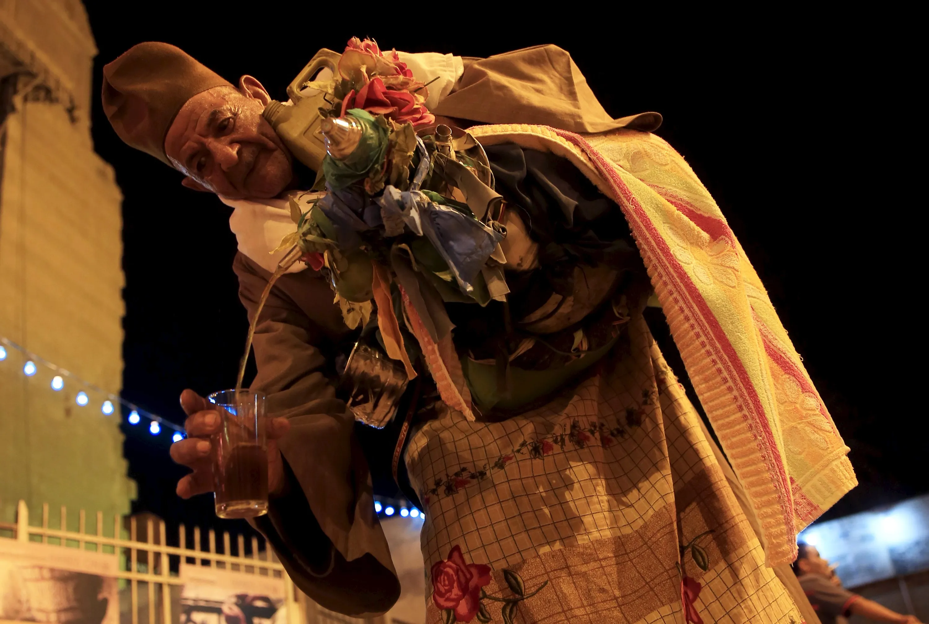 Traditional licorice juice vendor El Hag Mohamed, 92, sells juice after iftar (breaking of fast) during the Muslim fasting month of Ramadan at a celebration in the old Islamic area of Cairo, Egypt, July 8, 2015. Mohamed started selling his handmade licorice juice “Al Arksos” at the age of 70. (Photo by Amr Abdallah Dalsh/Reuters)