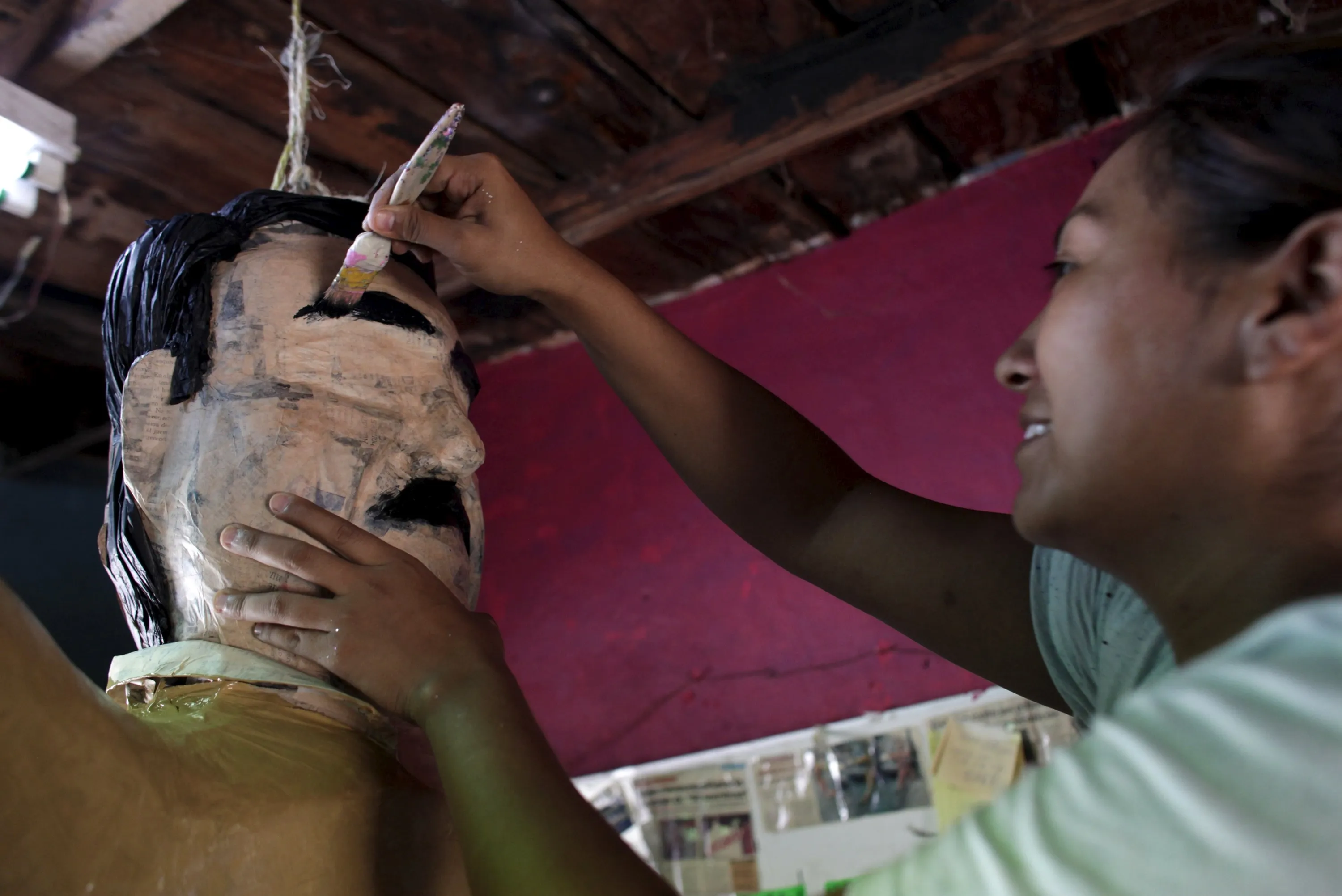 A worker paints an eyebrow on a pinata depicting drug lord Joaquin “El Chapo” Guzman at a workshop in Reynosa, July 21, 2015. (Photo by Daniel Becerril/Reuters)