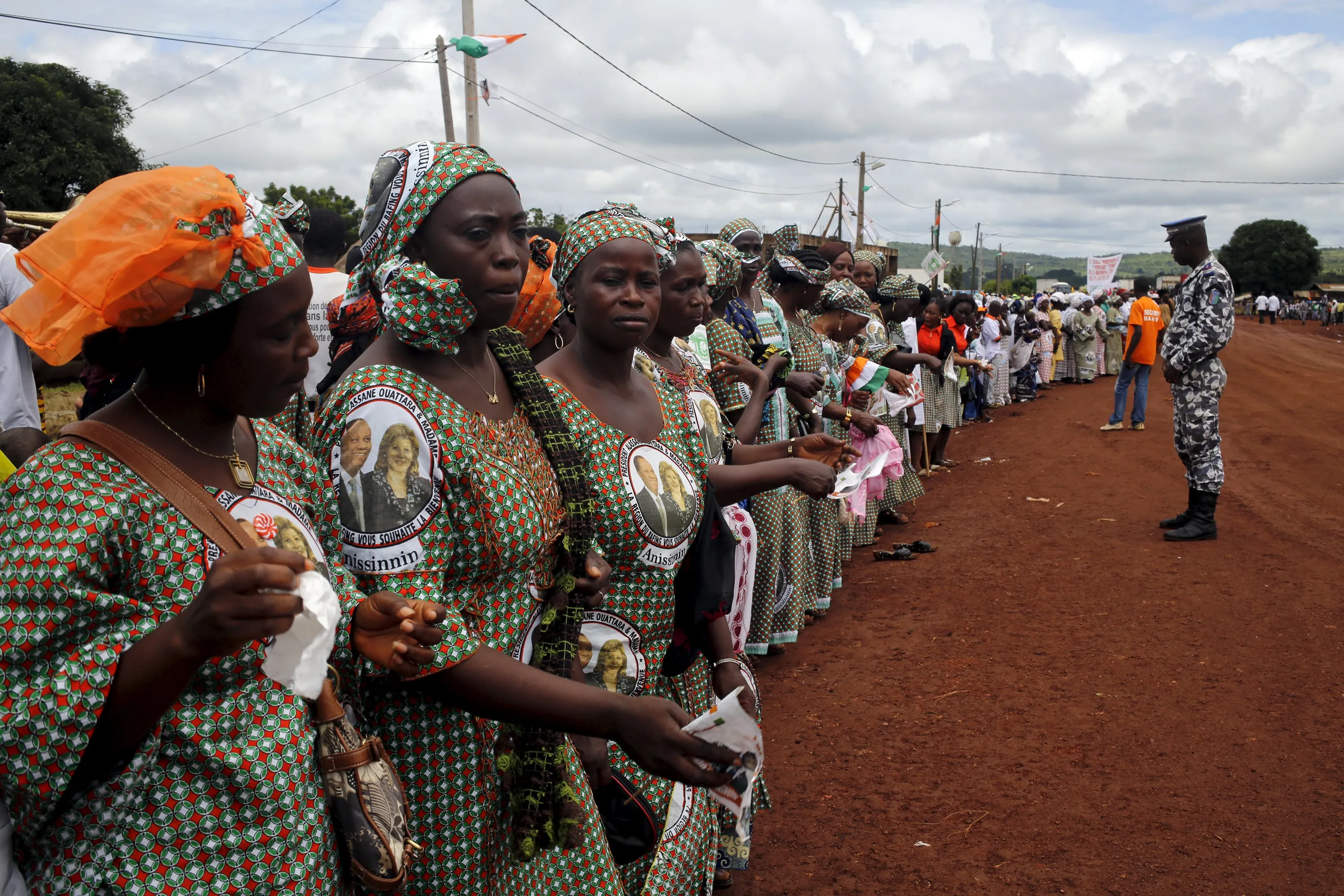 Women wait for the arrival of Ivory Coast's President Alassane Ouattara as he makes his state visit at the Ouaninou village, in Touba, in northwestern Ivory Coast July 22, 2015. (Photo by Luc Gnago/Reuters)