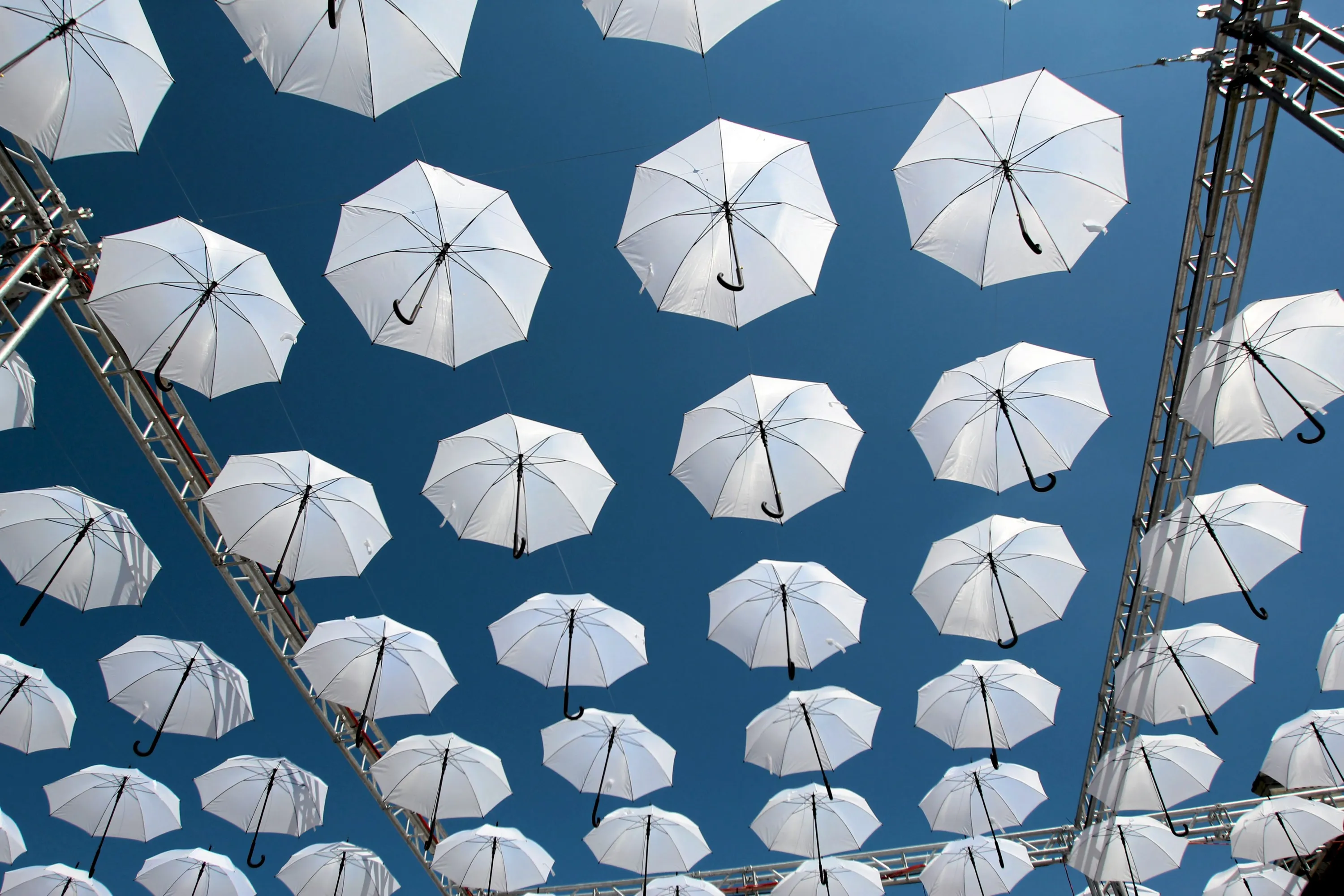 Umbrellas hang as a decoration during Carnaval Sztukmistrzow (Mountebanks) festival in Lublin, Poland, July 22, 205. Picture taken July 22, 2015. (Photo by Jakub Orzechowski/Reuters/Agencja Gazeta)