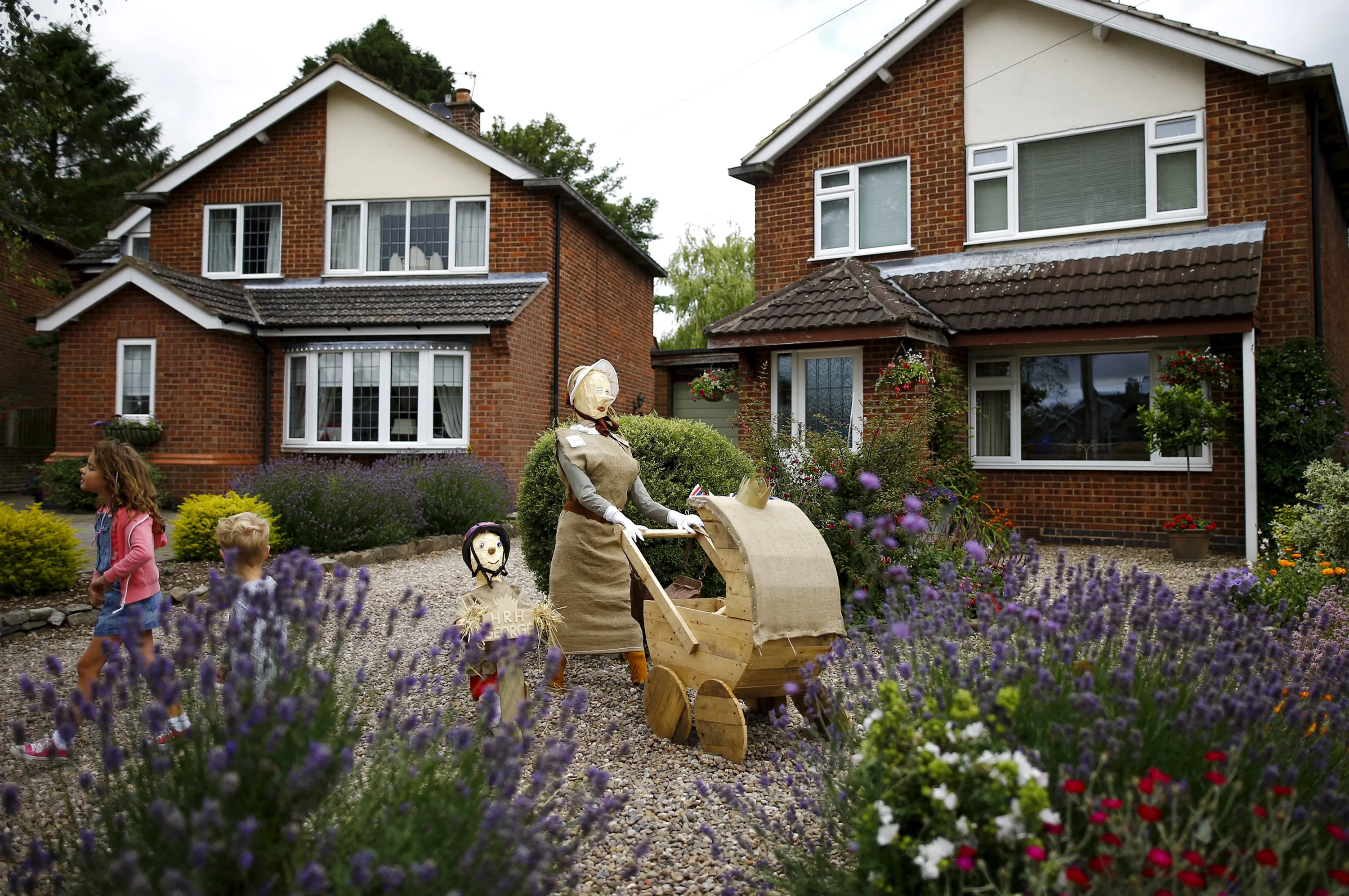 Children look at a scarecrow of Britain's Prince George and Princess Charlotte with their nanny during the Scarecrow Festival in Heather, Britain, July 28, 2015. (Photo by Darren Staples/Reuters)
