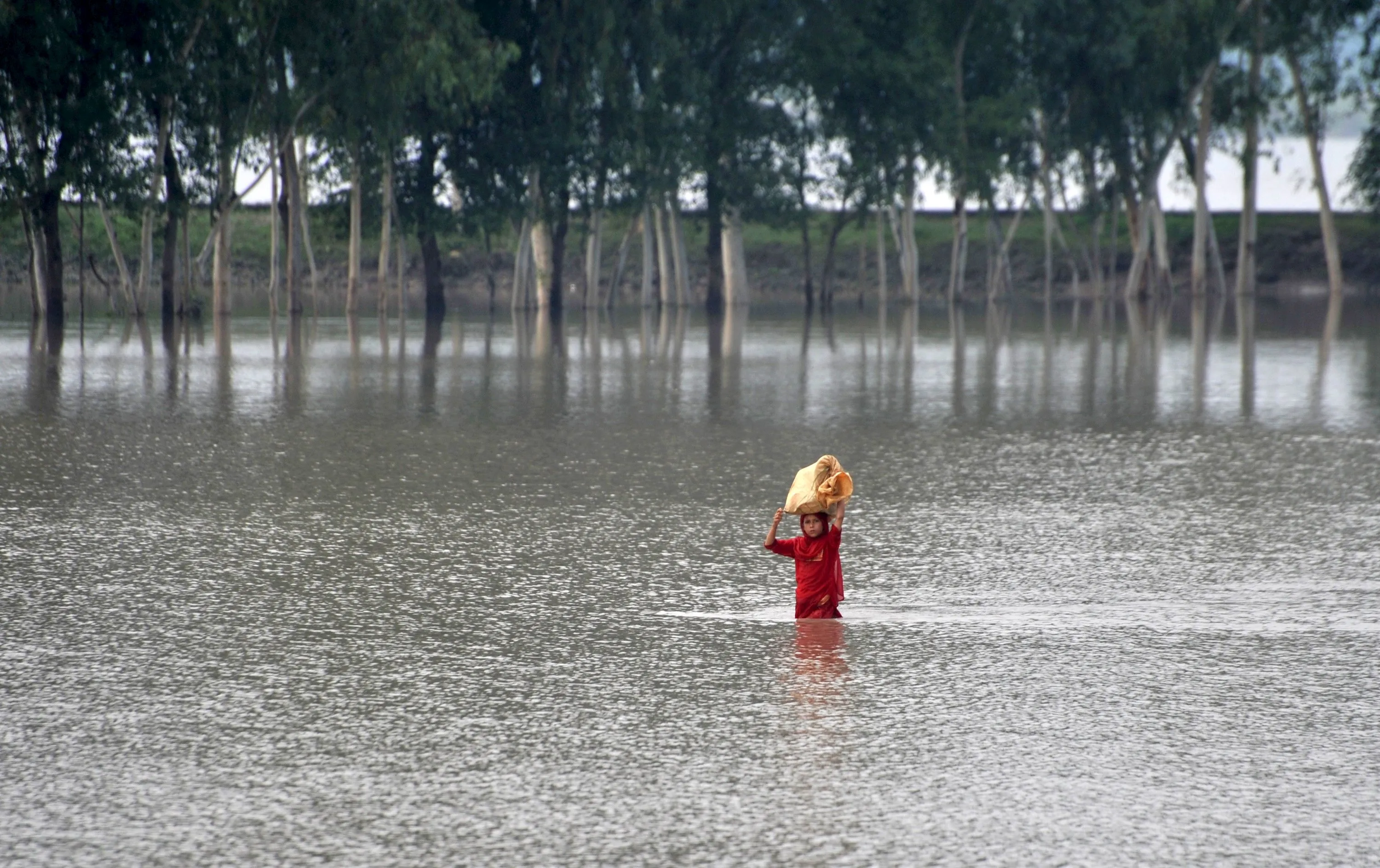 A girl walks through a flooded street at Camp Koruna area of Nowshera District, northwestern Pakistan, August 3, 2015. (Photo by Khuram Parvez/Reuters)