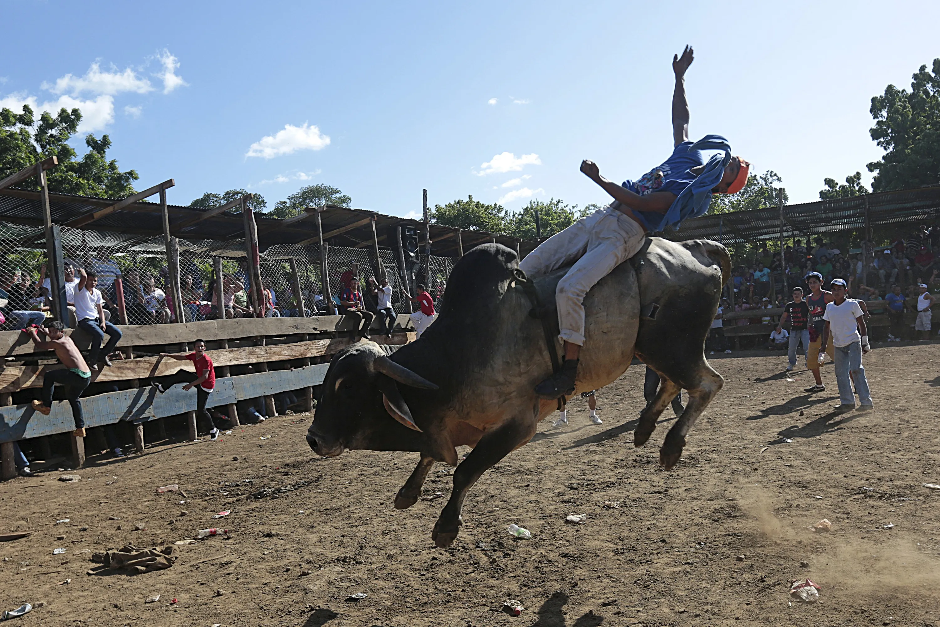 A man rides a bull during festivities honouring the capital's patron saint Santo Domingo de Guzman in Managua, Nicaragua August 2, 2015. (Photo by Oswaldo Rivas/Reuters)
