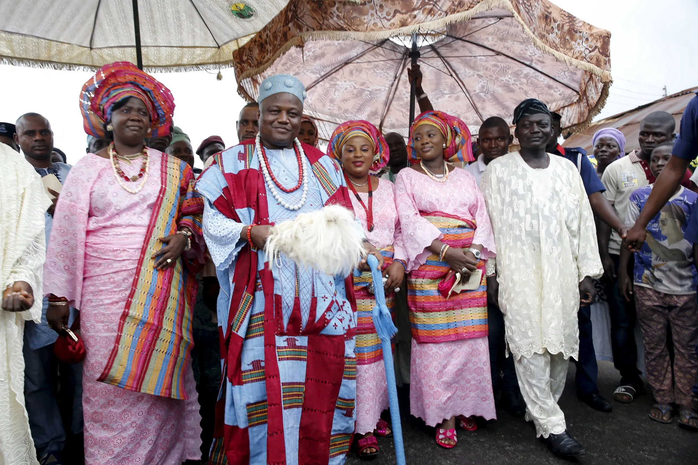 Monarch of Osogbo, Oba Jimoh Oyetunji (2nd L) walks with his wives down a street during the traditional town cleansing procession at the start of the annual Osun festival in Osogbo in Nigeria's southwest, August 10, 2015. (Photo by Akintunde Akinleye/Reuters)