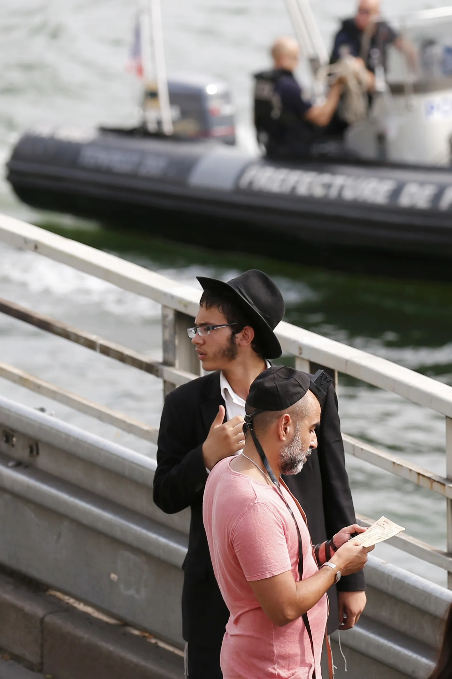 French police patrol on the River Seine as Jewish men are seen at “Paris Plages” during the “Tel Aviv on Seine” event in Paris, France, August 13, 2015. (Photo by Pascal Rossignol/Reuters)