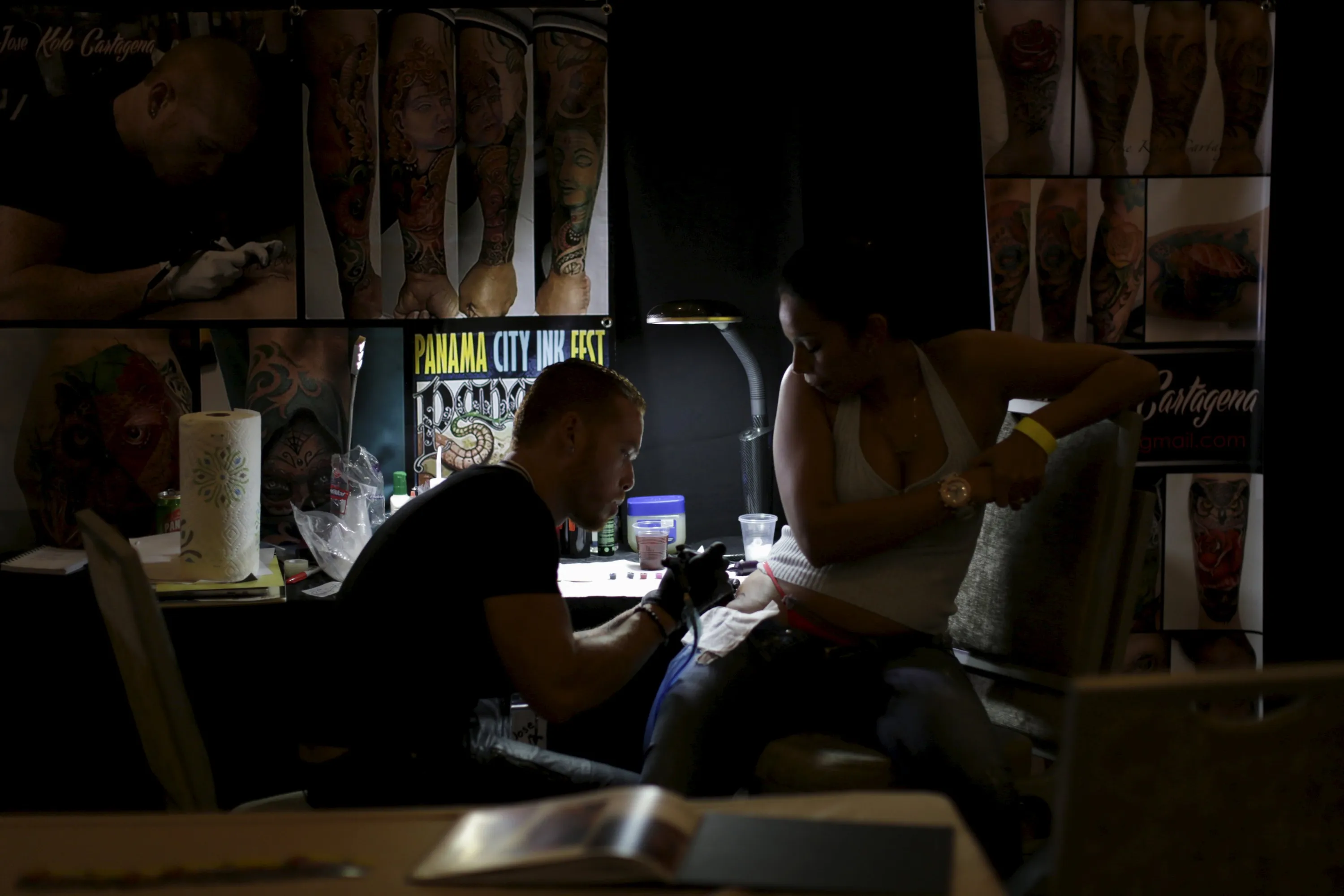 A woman gets a tattoo on her hip during the annual Panama City Ink Fest in Panama City August 16, 2015. (Photo by Carlos Jasso/Reuters)