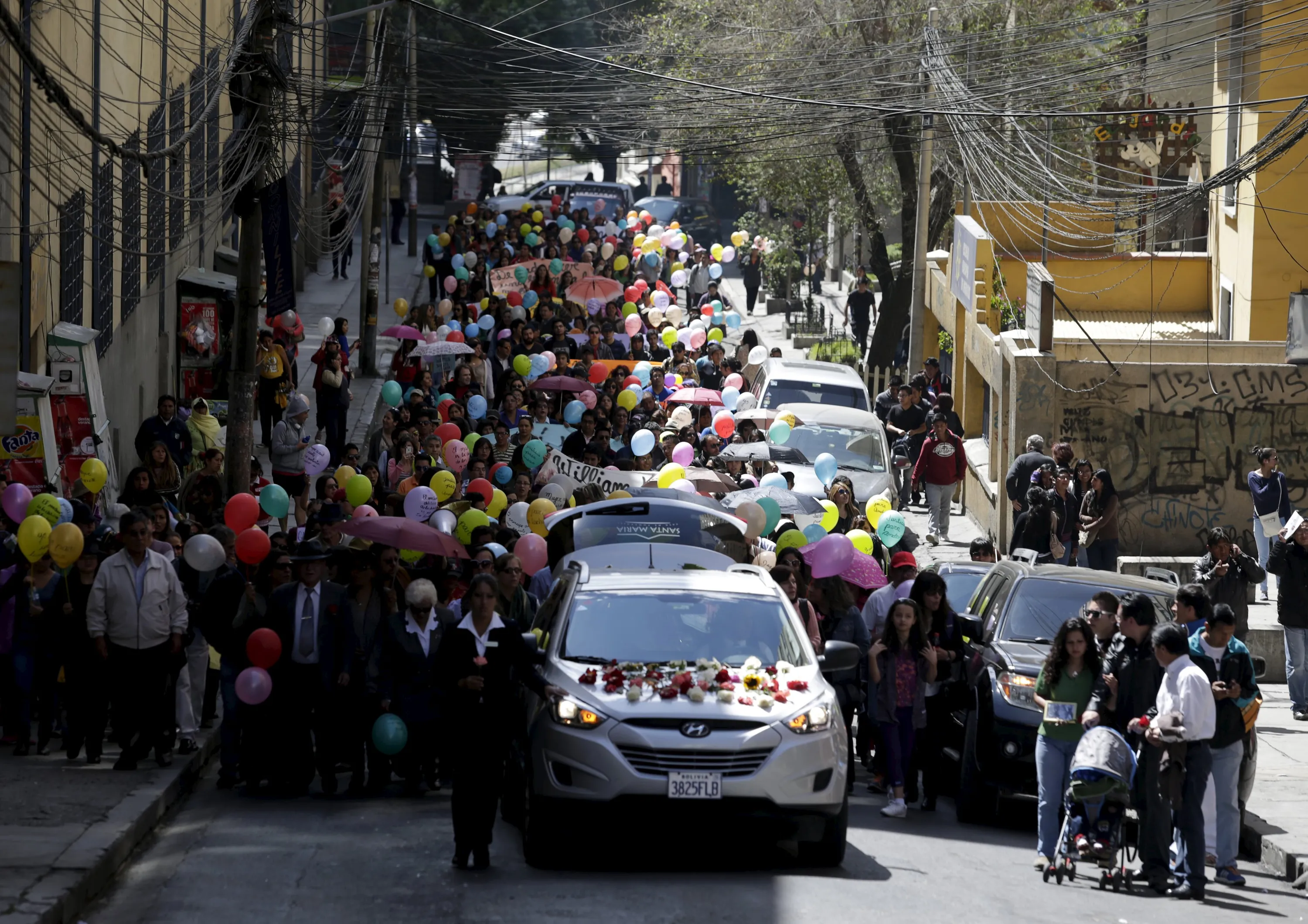 Activists participate in the funeral march of Andrea Alvarez, whose death is being investigated as a femicide in La Paz, Bolivia August 22, 2015. (Photo by David Mercado/Reuters)