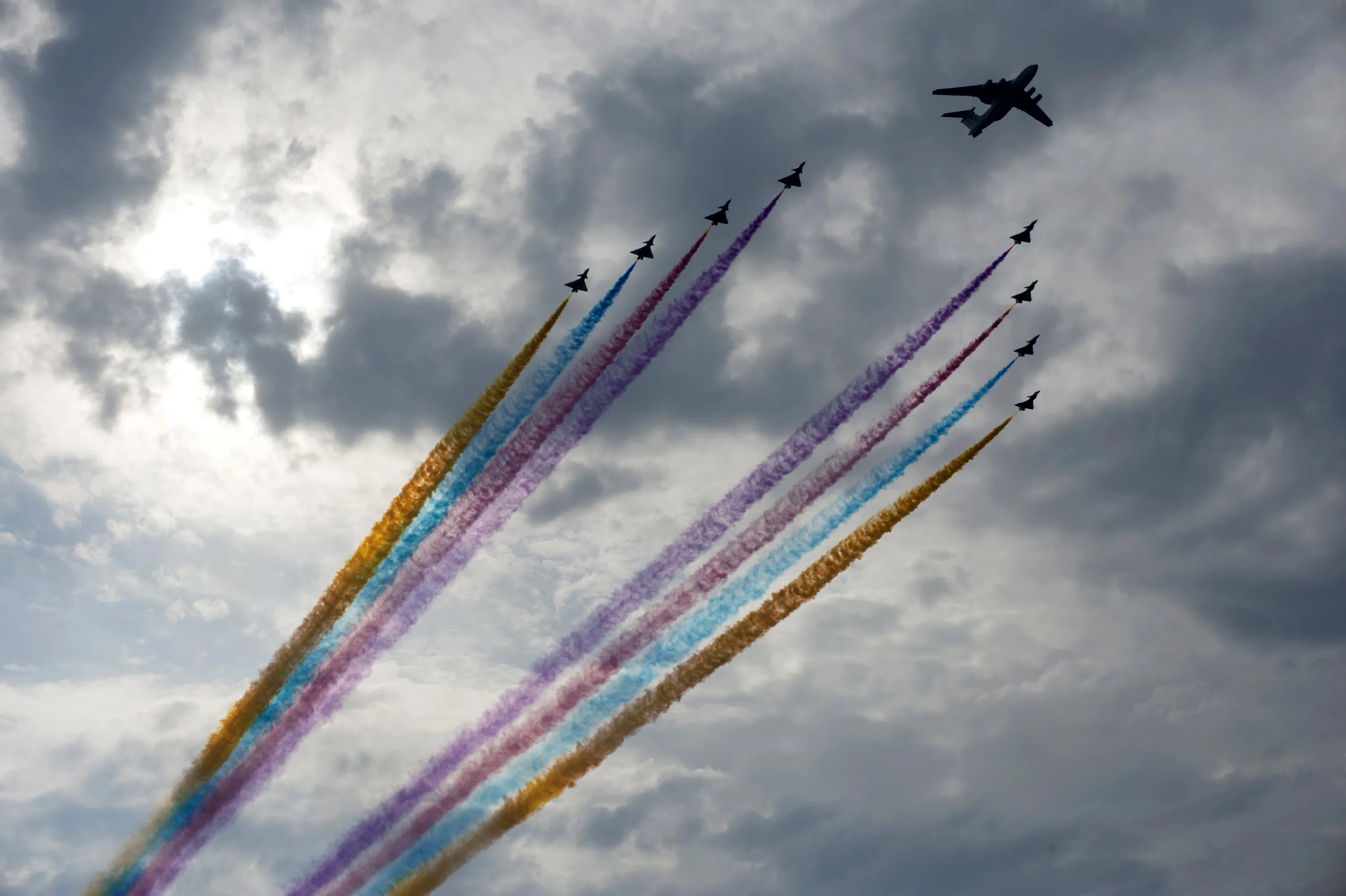 Aircraft perform during a rehearsal for a military parade in Beijing, August 23, 2015. Troops from at least 10 countries including Russia and Kazakhstan will join an unprecedented military parade in Beijing next month to commemorate China's victory over Japan during World War Two, Chinese officials said. The parade on September 3 will involve about 12,000 Chinese troops and 200 aircraft, Qi Rui, deputy director of the government office organizing the parade, told reporters in Beijing on Friday. (Photo by Reuters/Stringer)