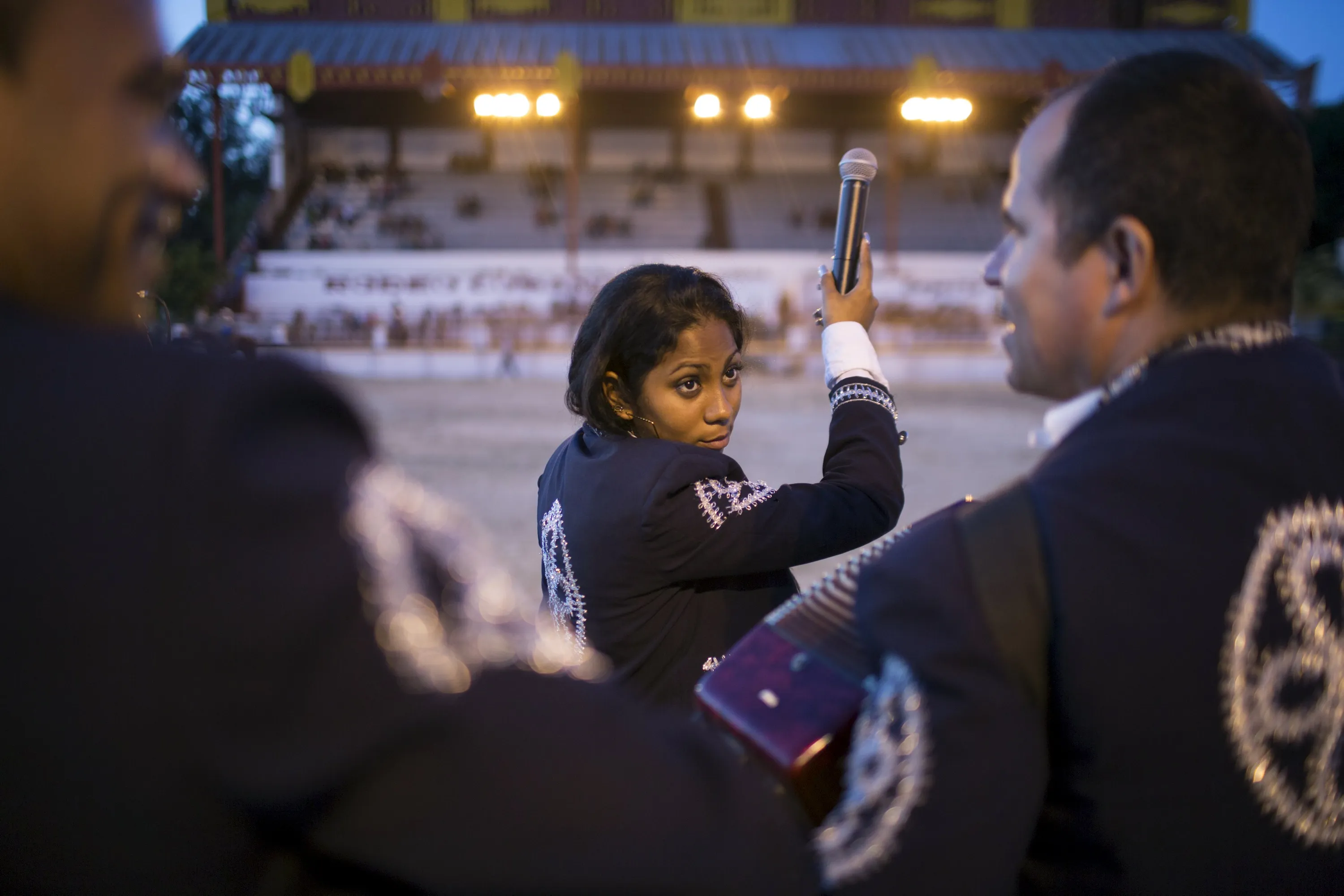 Mariachi Diana Sanchez, 23, talks to members of her band during a presentation at the International Livestock Fair Show in Havana, March 16, 2015. (Photo by Alexandre Meneghini/Reuters)