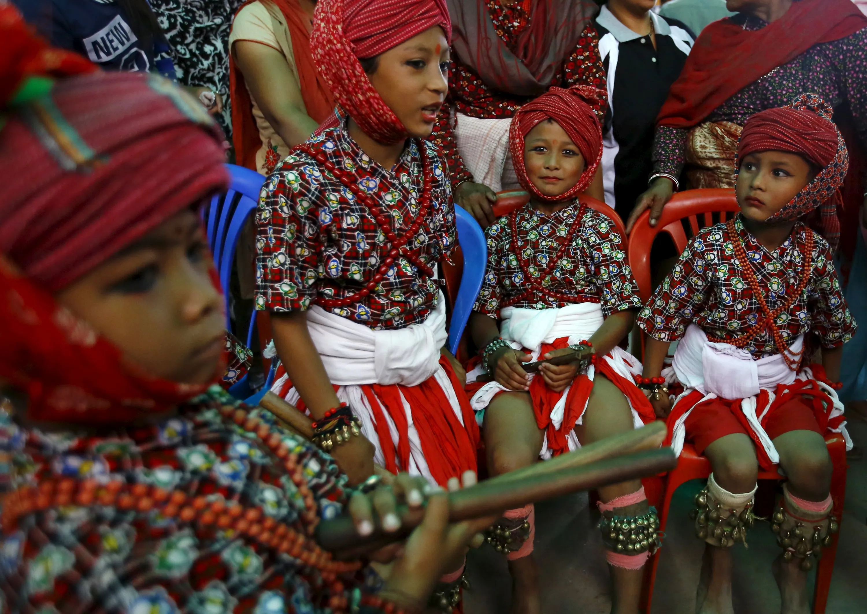 Boys in traditional attire wait to take part in a memorial rally dedicated to the people who were killed in the April 25 earthquake in Bhaktapur September 2, 2015. (Photo by Navesh Chitrakar/Reuters)