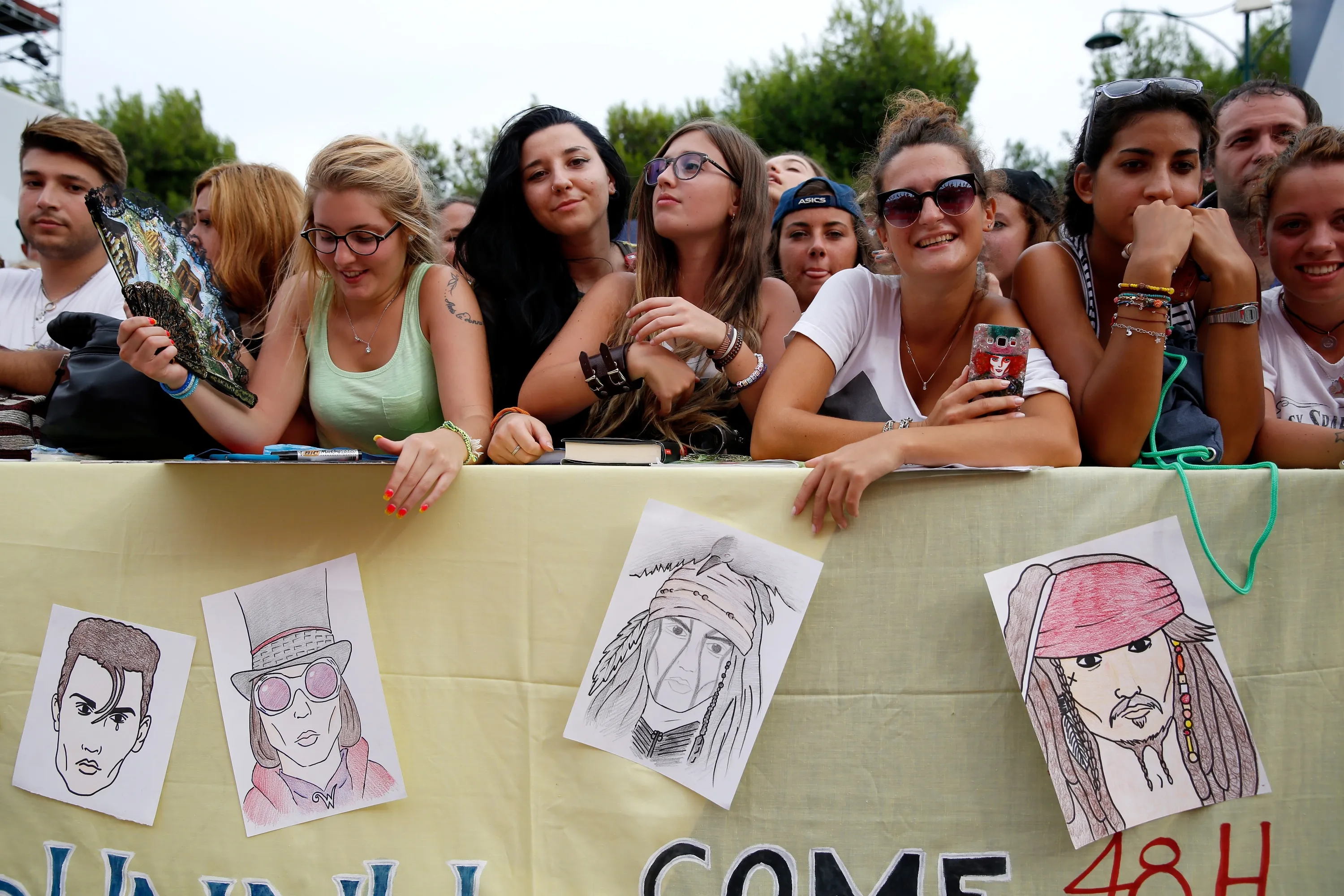Fans await Johnny Depp at the “Black Mass” premiere during the 72nd Venice Film Festival at on September 4, 2015 in Venice, Italy. (Photo by Tristan Fewings/Getty Images)