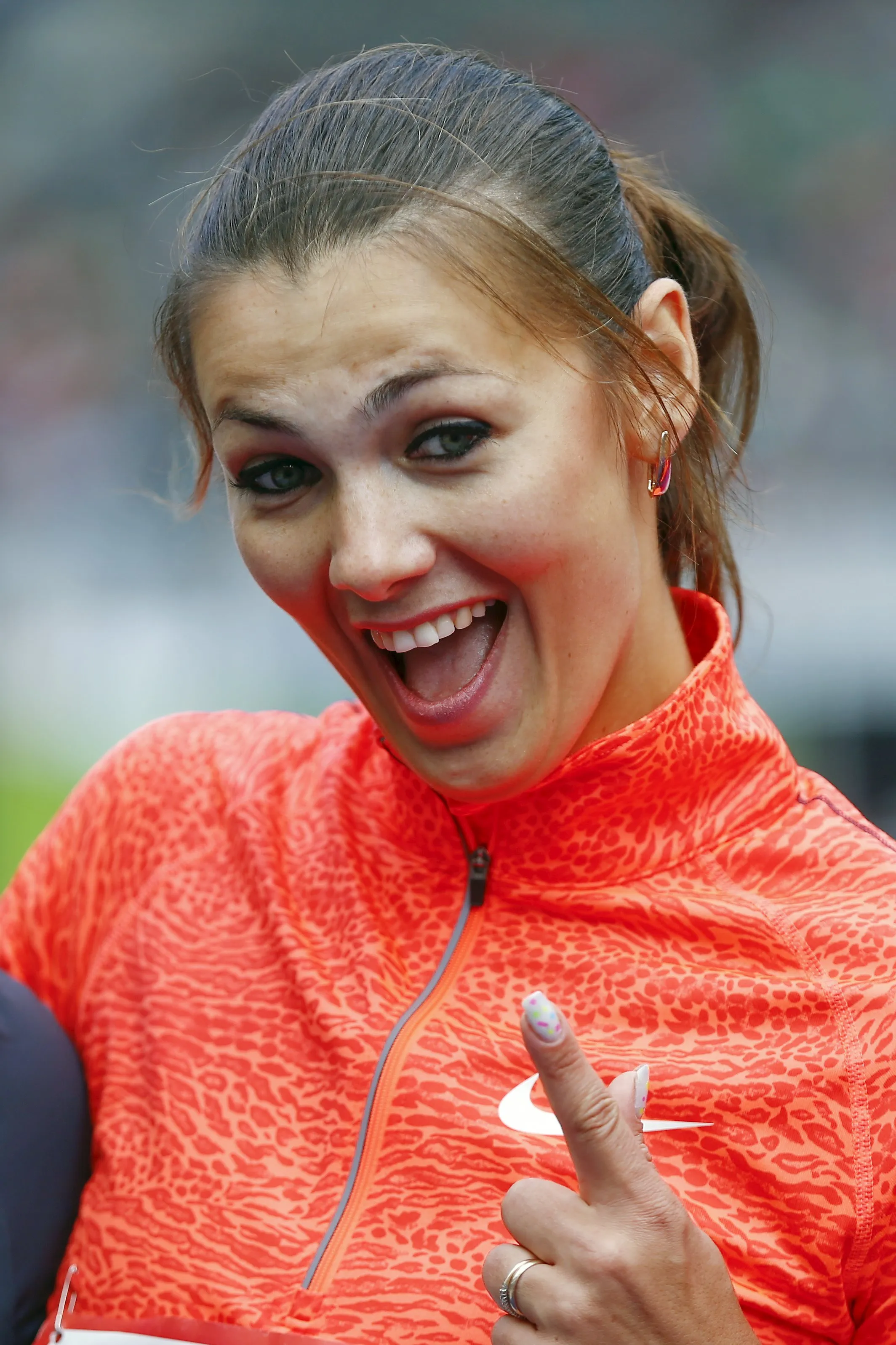 Marharyta Dorozhon of Israel celebrates after winning the women's javelin throw at the ISTAF athletics meeting in Berlin, Germany, September 6, 2015. (Photo by Hannibal Hanschke/Reuters)