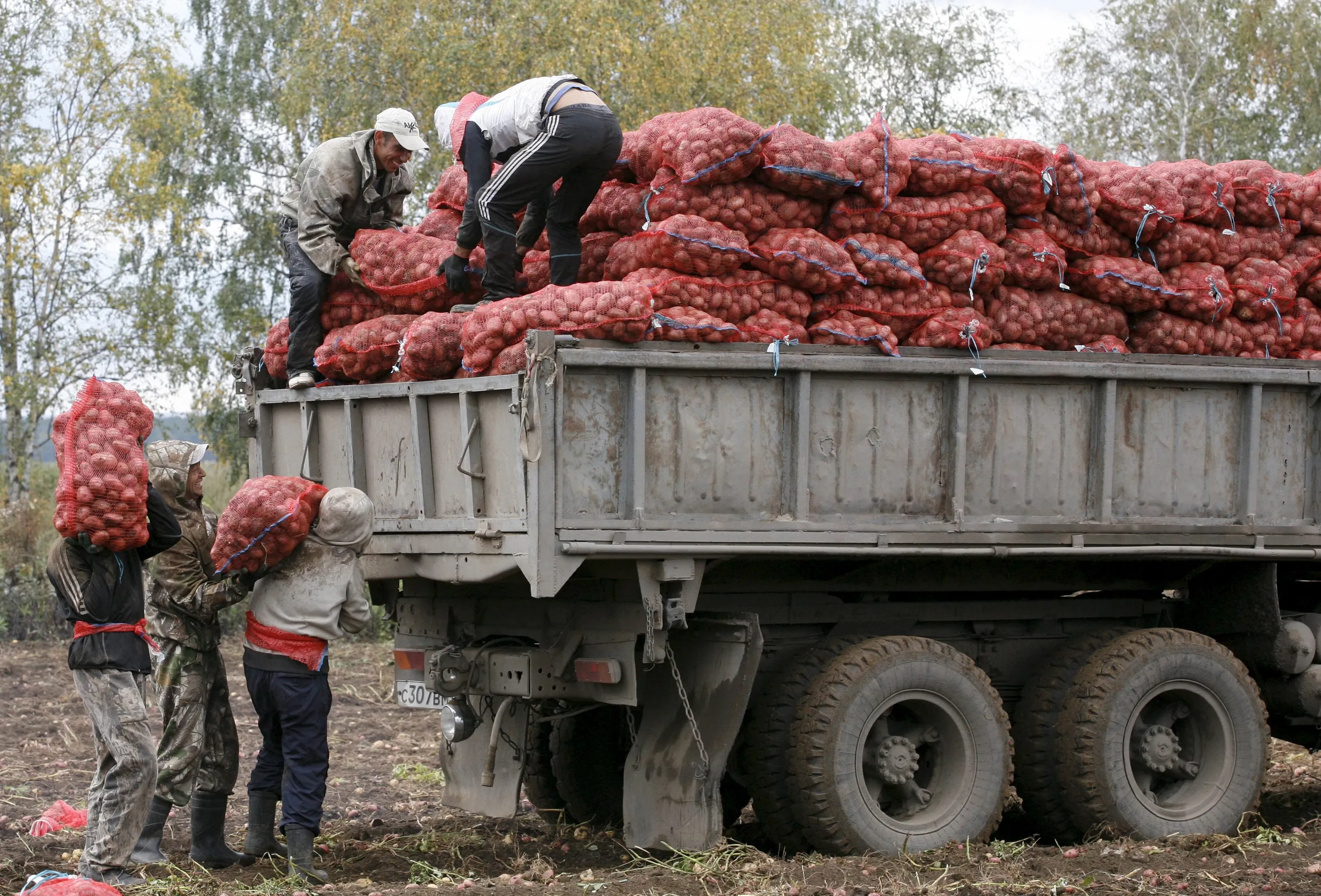 Migrant workers from Uzbekistan load sacks of potatoes into a truck at a private agrarian field in the village of Beryozovka near Russia's Siberian city of Krasnoyarsk, Russia, September 7, 2015. (Photo by Ilya Naymushin/Reuters)
