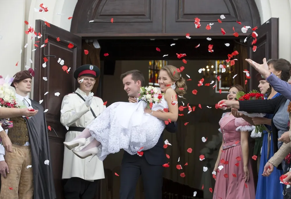 A groom carries his bride after the official registration of their marriage during the Day of Minsk celebrations in central Minsk, Belarus, September 12, 2015. (Photo by Vasily Fedosenko/Reuters)