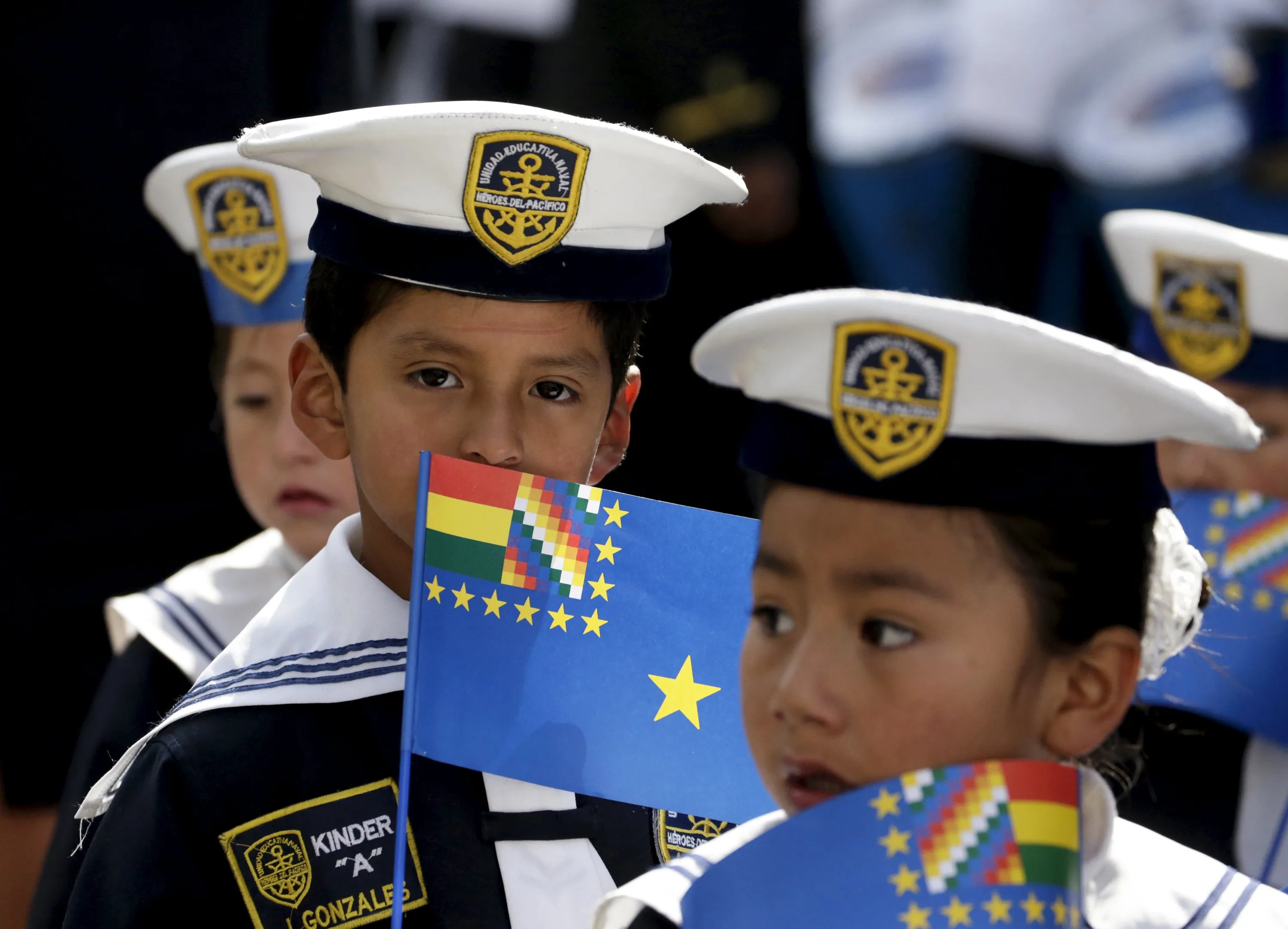 Children dressed as navy officials attend a ceremony at Murillo Square after learning the statement made by the International Court of Justice (CIJ), in La Paz, Bolivia September 24, 2015. The International Court of Justice will continue to hear a case brought by Bolivia against Chile seeking to force its neighbour to enter negotiations to grant it unfettered access to the Pacific Ocean, the court said on Thursday. (Photo by David Mercado/Reuters)