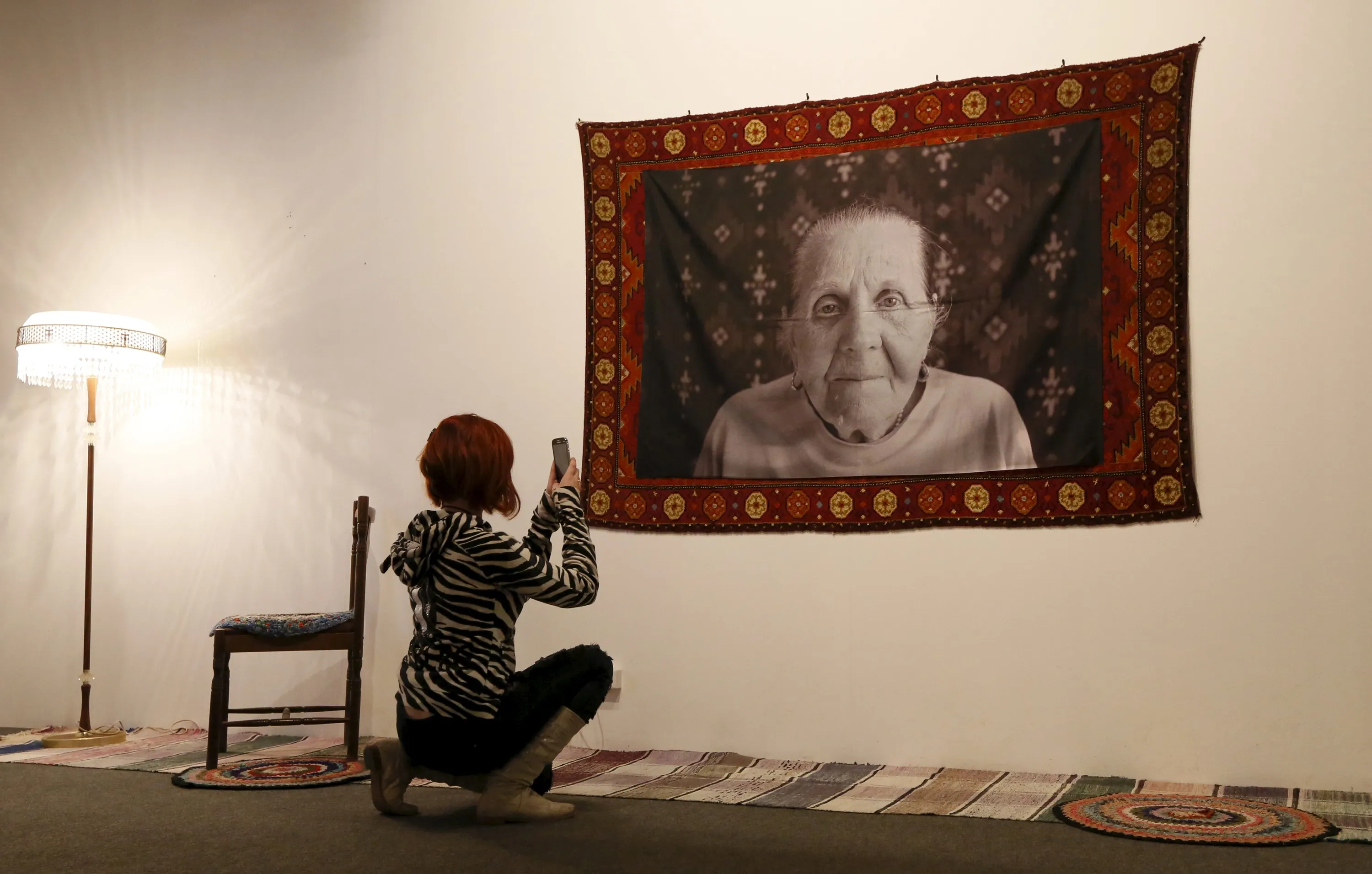 A visitor takes pictures of an art work by Russian artist Leonid Tishkov, part of the "Look Homeward" installation, after a ceremony opening for the 11th Krasnoyarsk Museum Biennale at the Krasnoyarsk Museum Centre in Siberia, Russia, September 30, 2015. (Photo by Ilya Naymushin/Reuters)