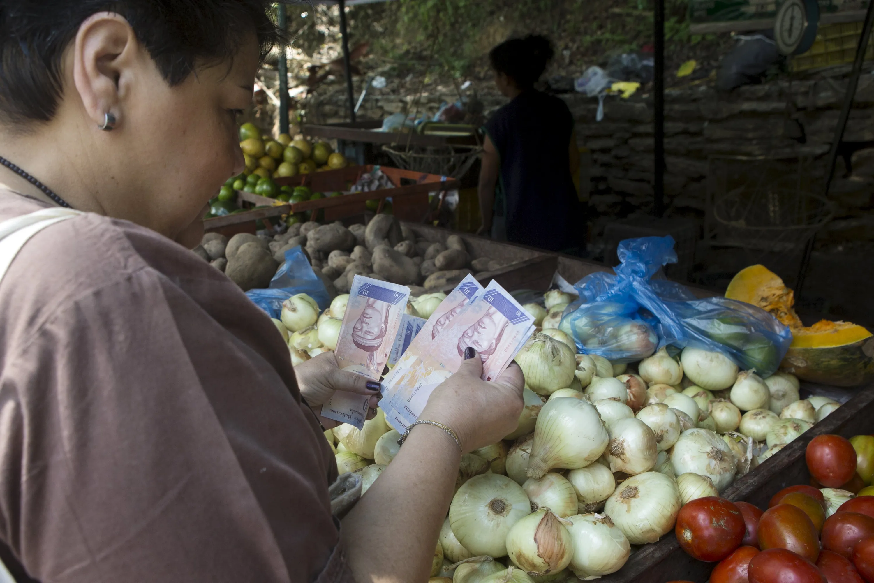 A woman counts bolivar notes as she pays for vegetables at a street market in Caracas, Venezuela, October 1, 2015. Venezuela's monthly inflation was 16.9 percent in September, the highest in a quarter-century, and has reached an annual rate of 179.5 percent, an opposition-leaning newspaper said on Thursday, citing a source close to the Central Bank. (Photo by Marco Bello/Reuters)