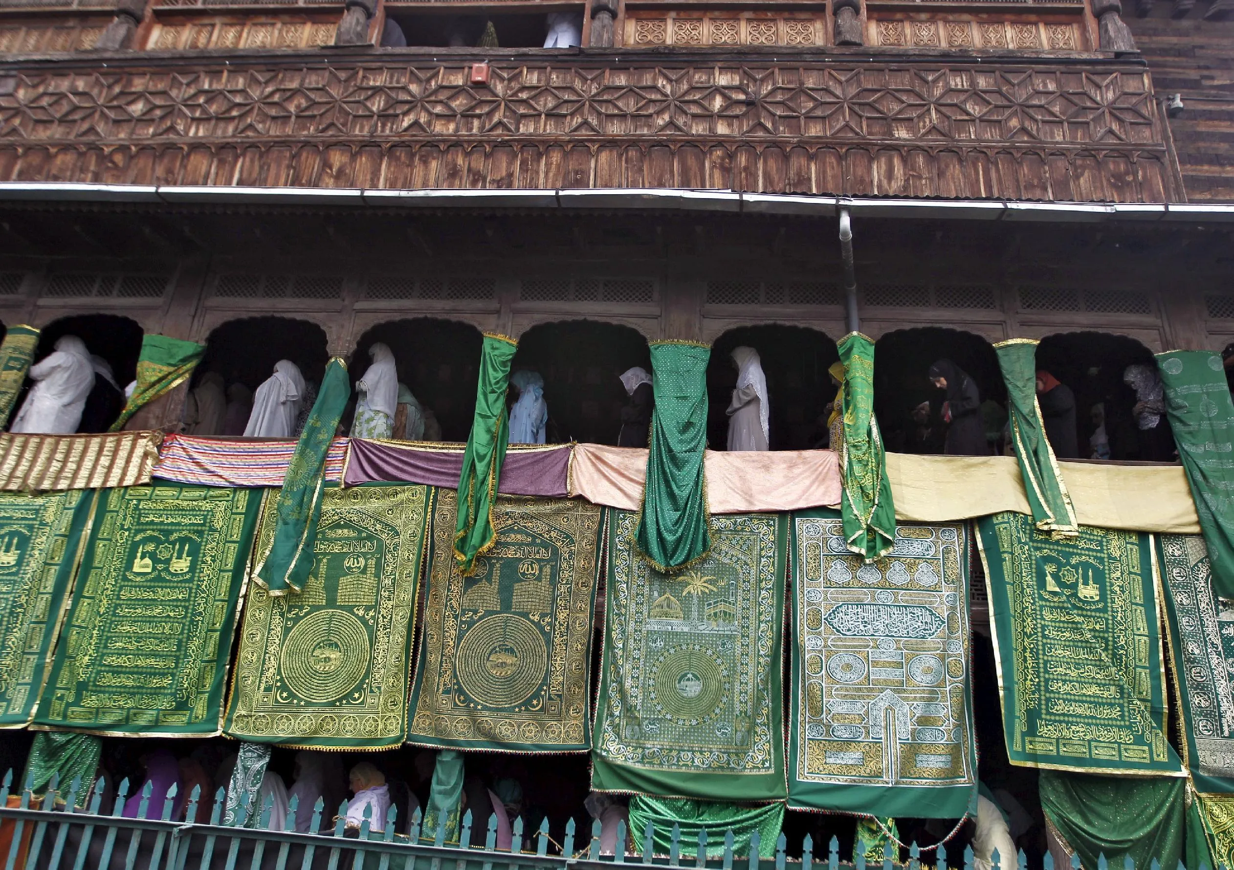 Kashmiri Muslim women offer prayers at the shrine of Mir Syed Ali Hamdani, a Sufi saint, during a religious festival to mark Saint Hamdani's birth anniversary in Srinagar September 21, 2015. Thousands of Kashmiri Sufi Muslim devotees visited the shrine of Saint Hamdani, who travelled to Kashmir from Iran to spread Islam in the region, for the anniversary of his birth on Monday. (Photo by Danish Ismail/Reuters)